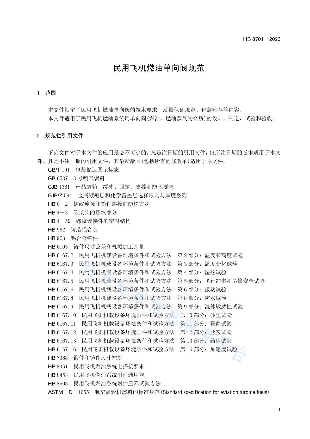 HB 8701-2023 民用飞机燃油单向阀规范