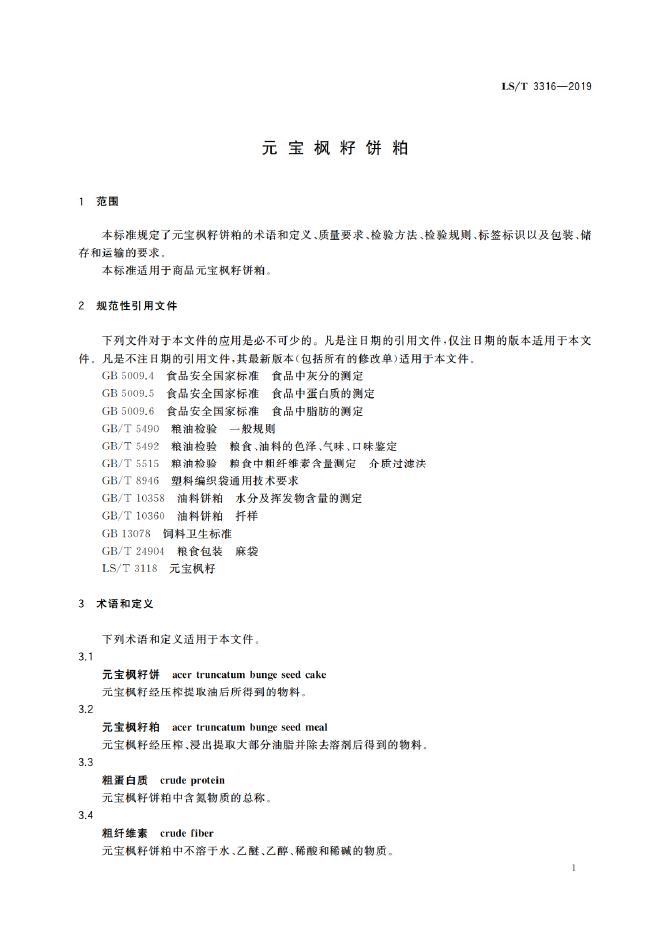 LS/T 3316-2019 元宝枫籽饼粕