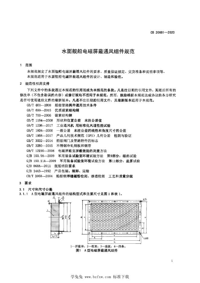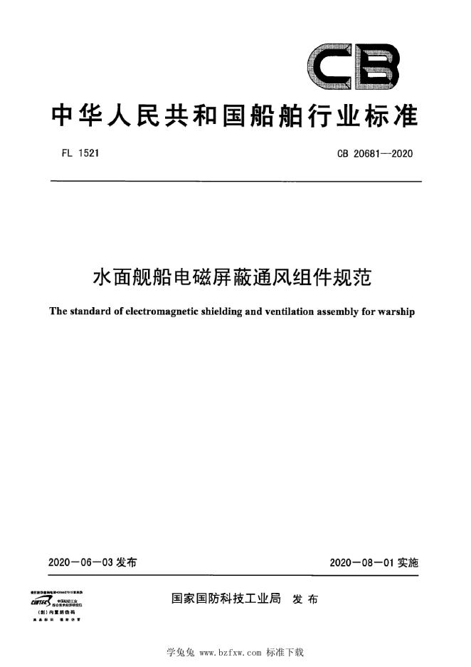 CB 20681-2020 水面舰船电磁屏蔽通风组件规范