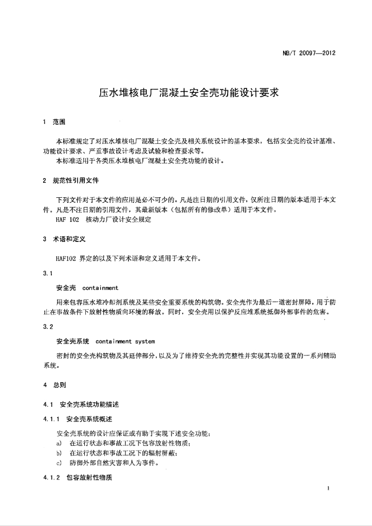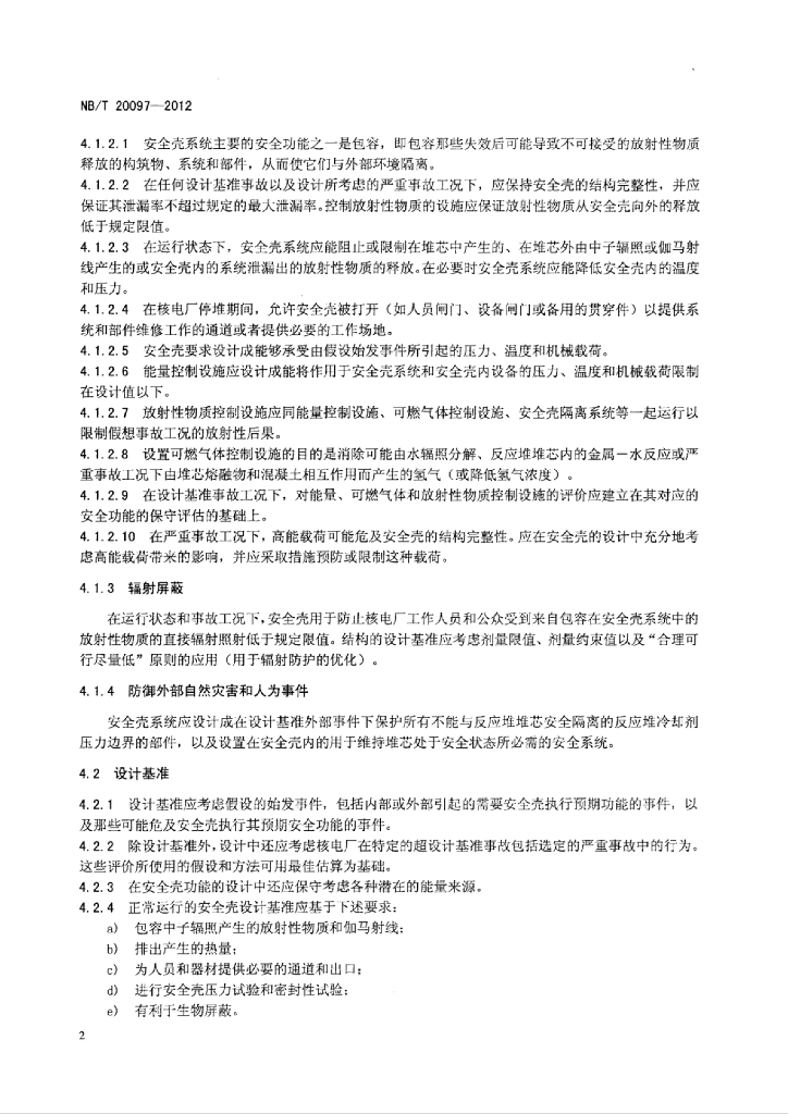 NB/T 20097-2012 压水堆核电厂混凝土安全壳功能设计要求