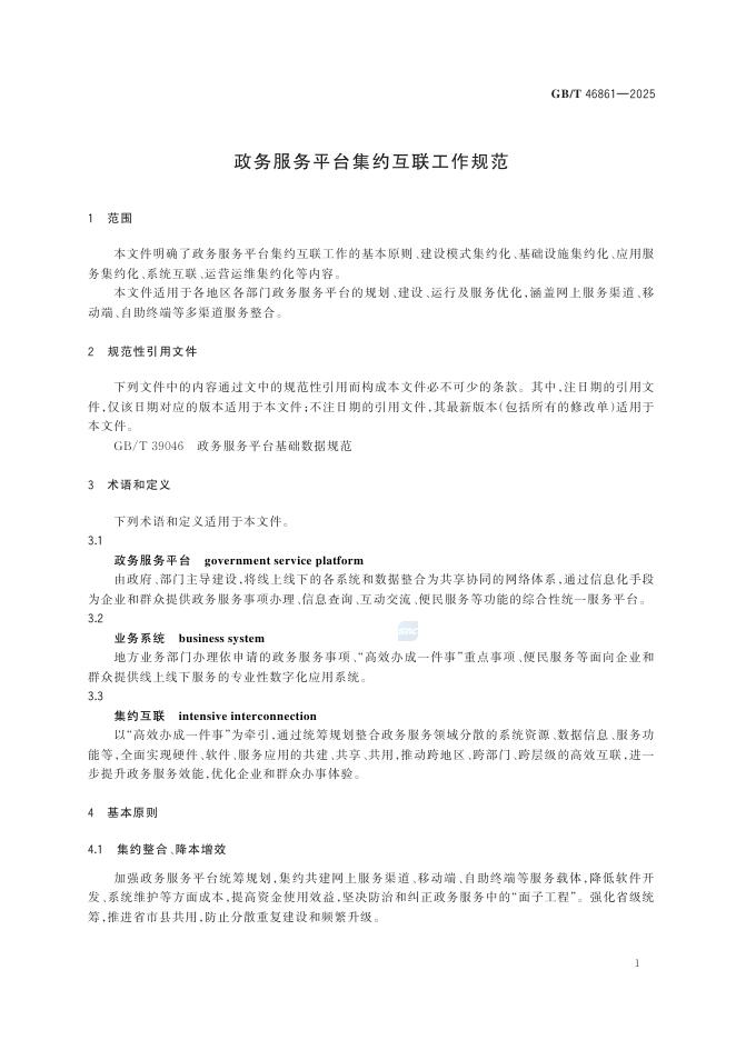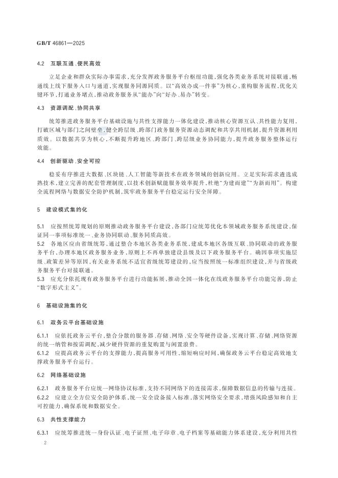 GB/T 46861-2025 政务服务平台集约互联工作规范