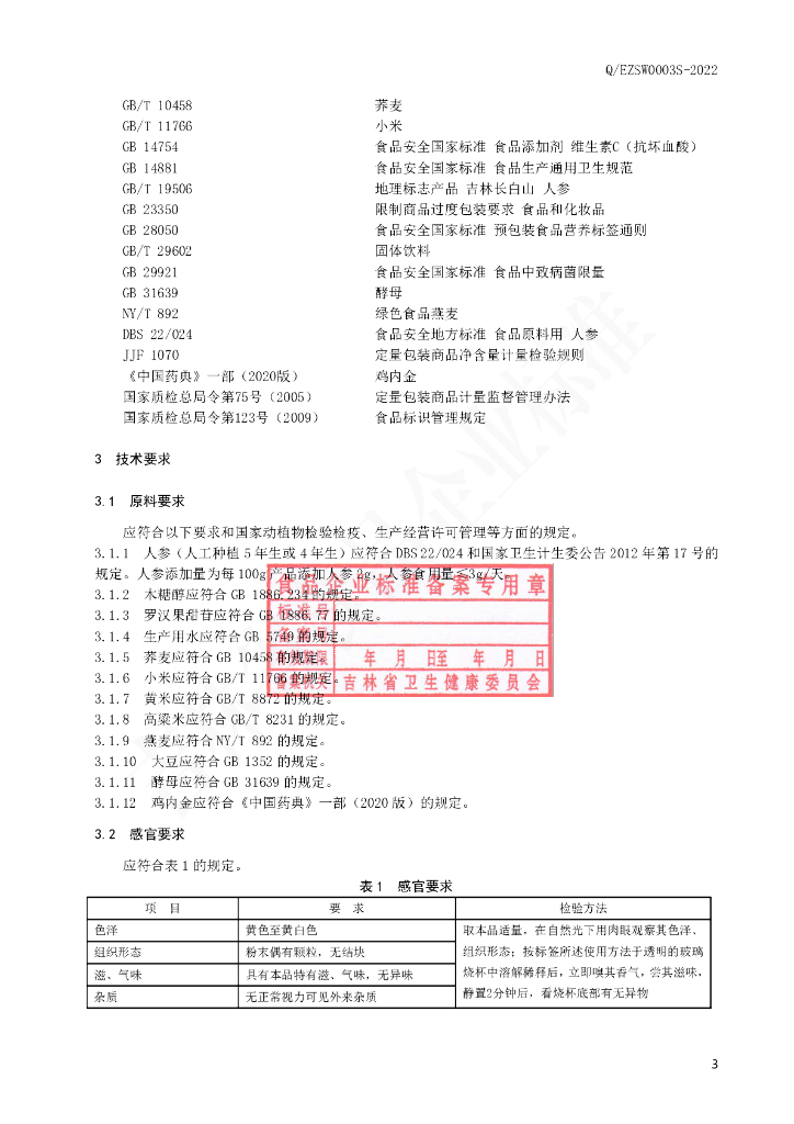 Q/EZSW 0003S-2022 人参黍稷酵母粉(固体饮料)