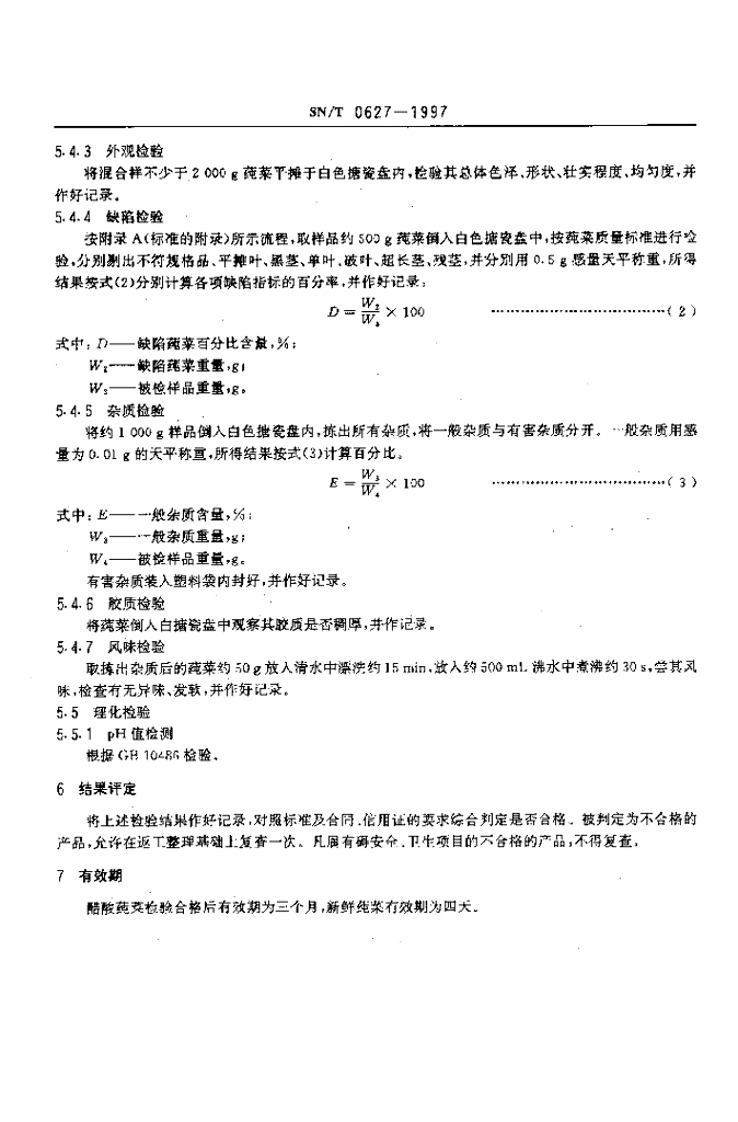 SN/T 0627-1997 出口莼菜检验规规程