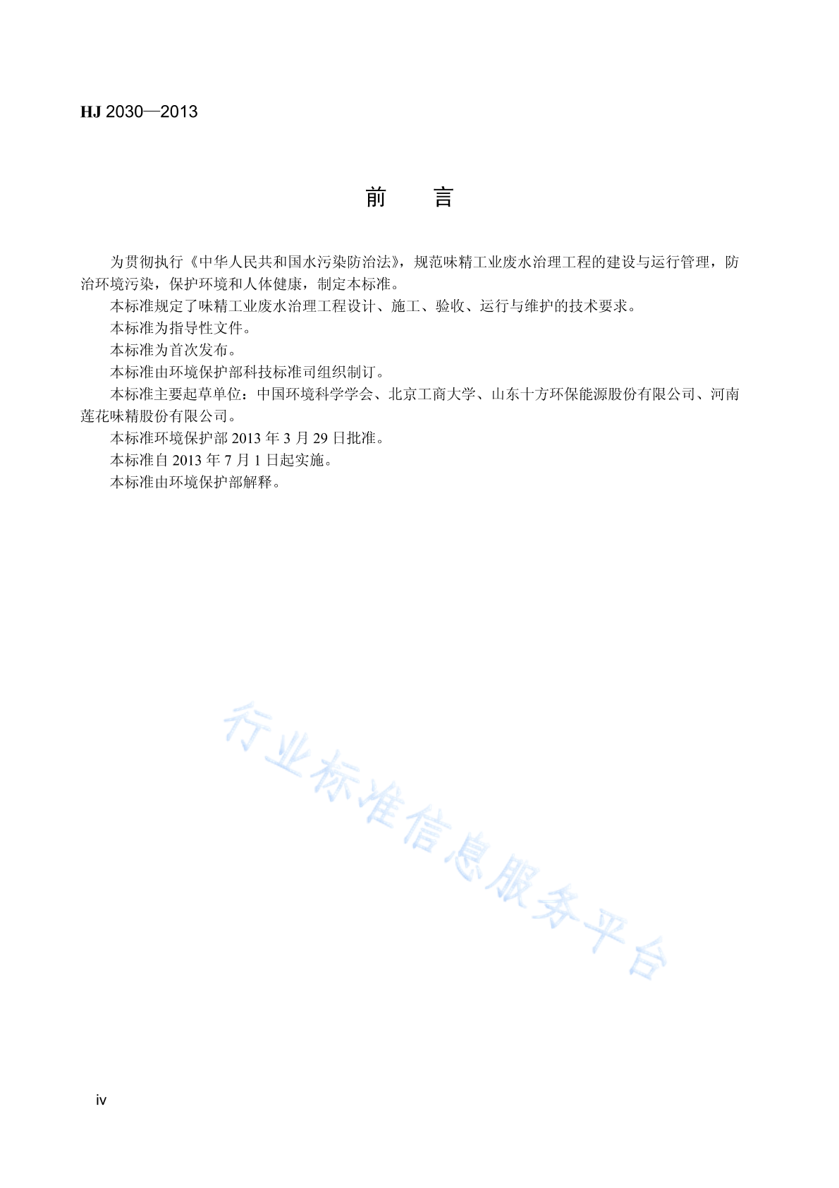 HJ 2030-2013 味精工业废水治理工程技术规范