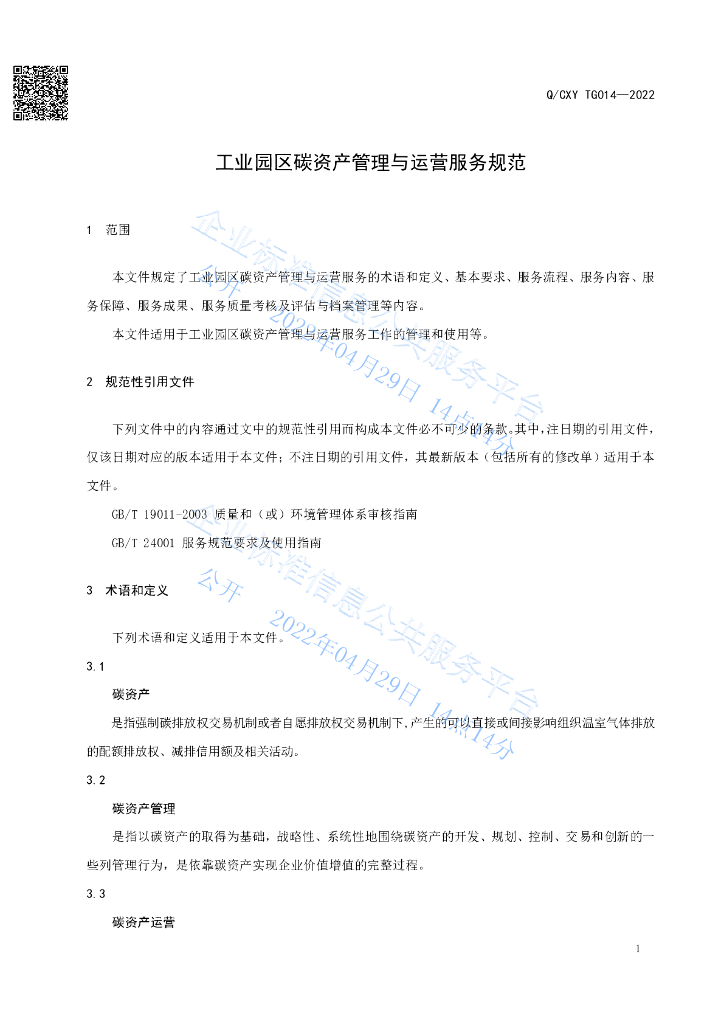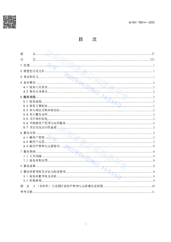 Q/CXY TG014-2022 工业园区碳资产管理与运营服务