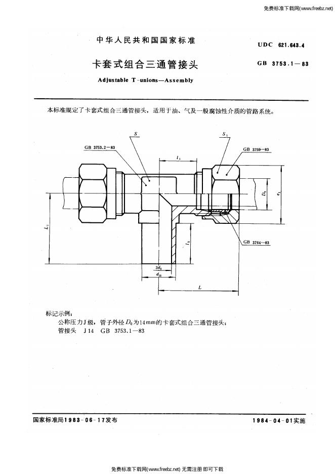 GB/T 3753.1-1983 卡套式组合三通管接头