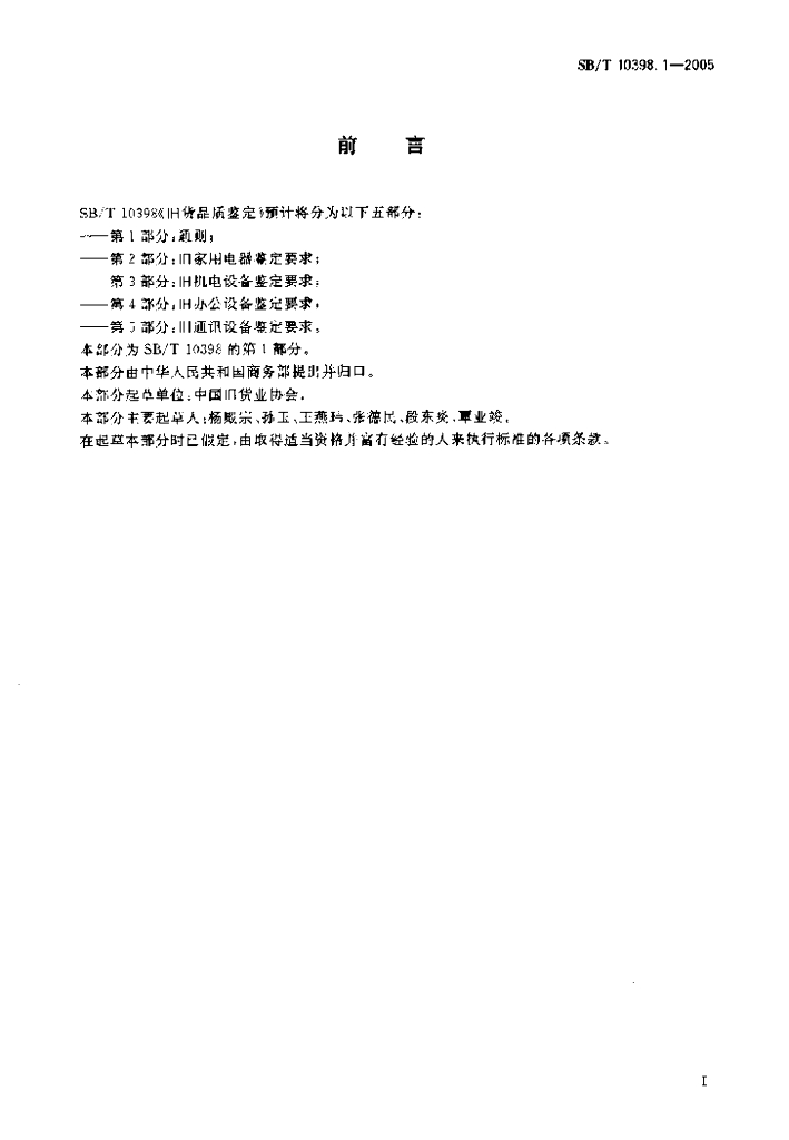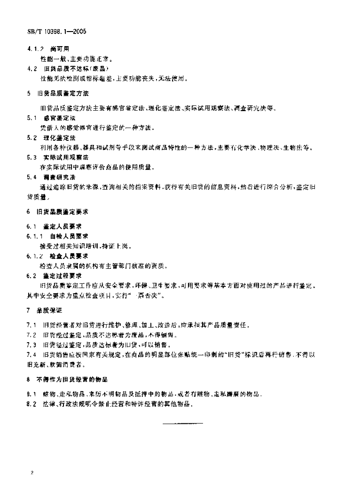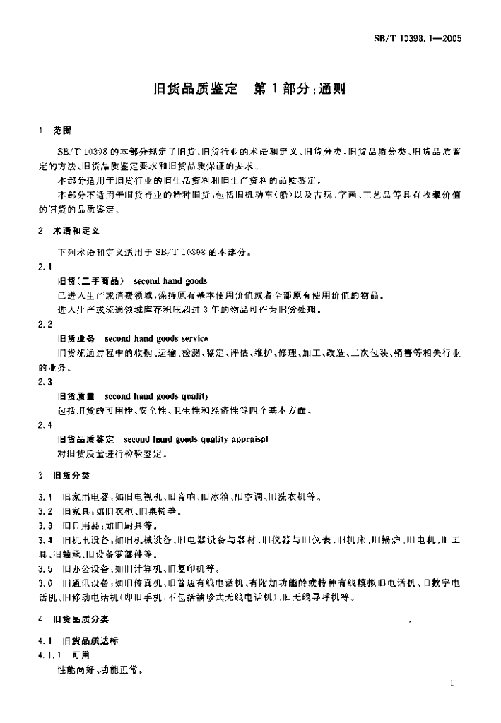 SB/T 10398.1-2005 旧货品质鉴定第1部分通则