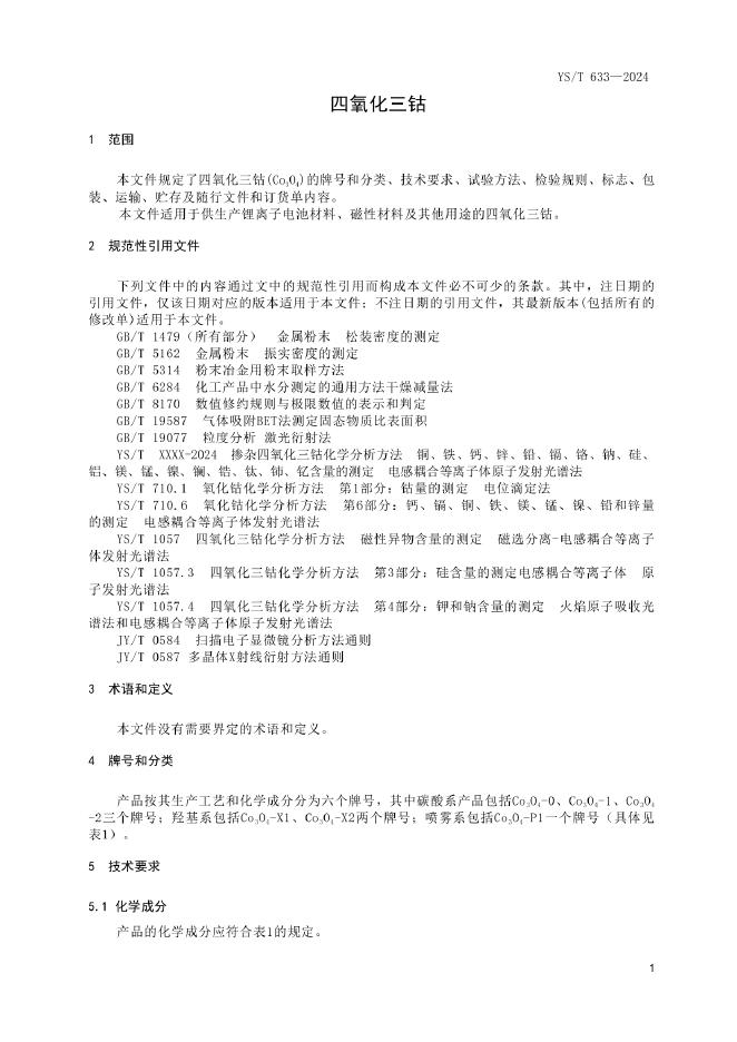 YS/T 633-2024 四氧化三钴