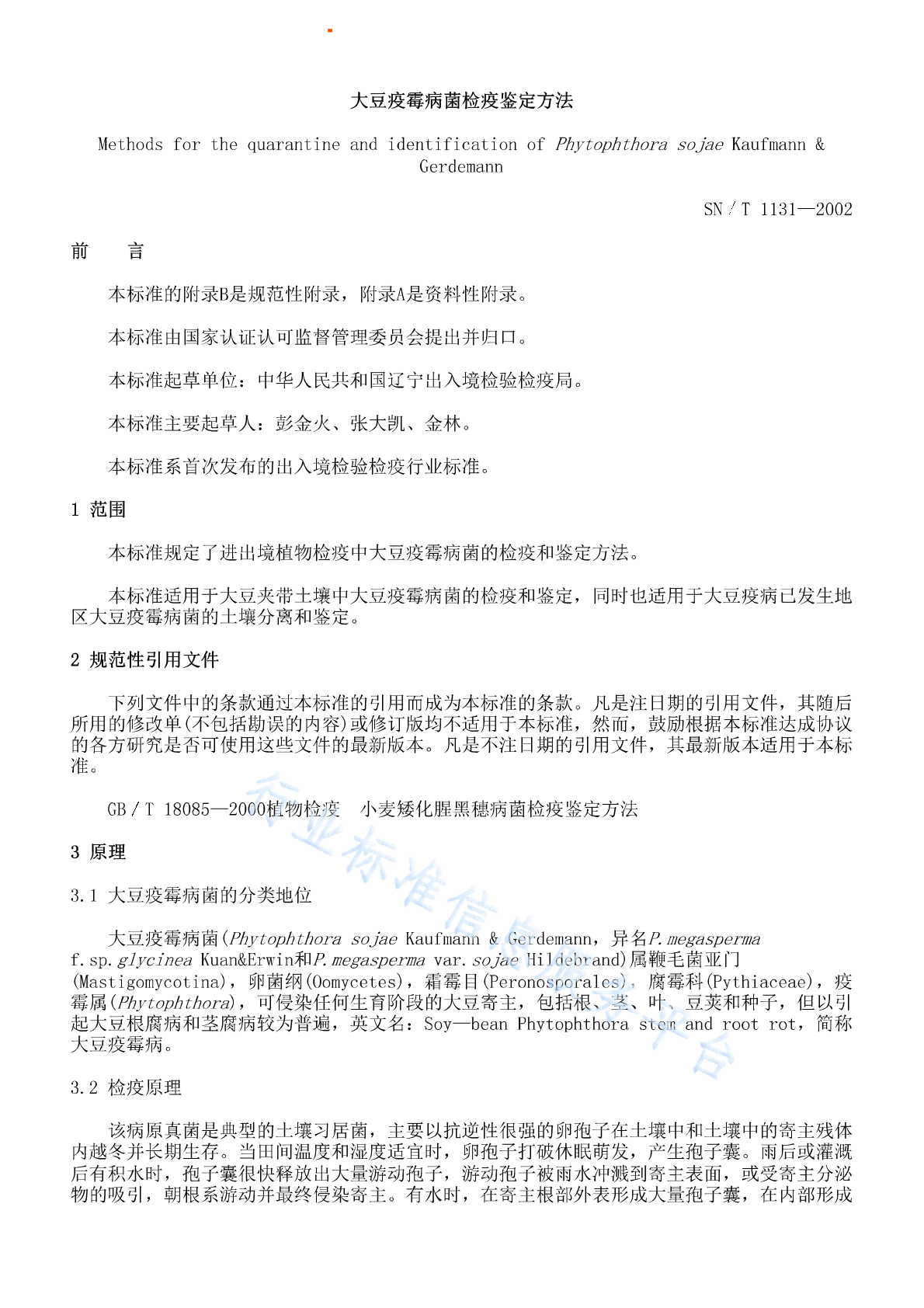 SN/T 1131-2002 大豆疫霉病菌检疫鉴定方法