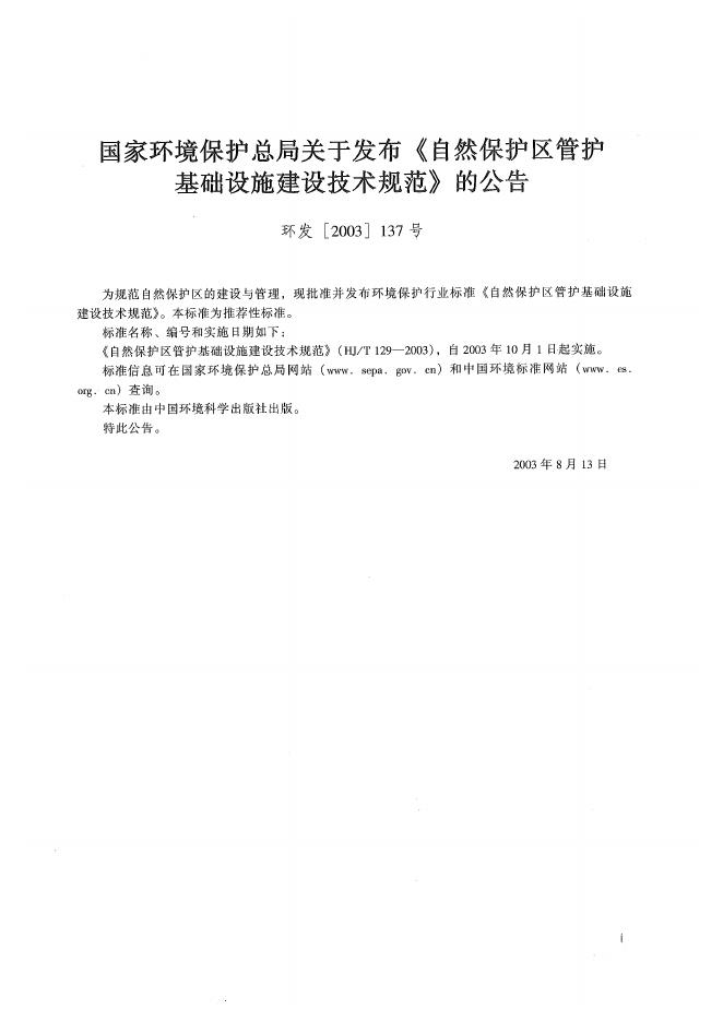 HJ/T 129-2003 自然保护区管护基础设施建设技术规范