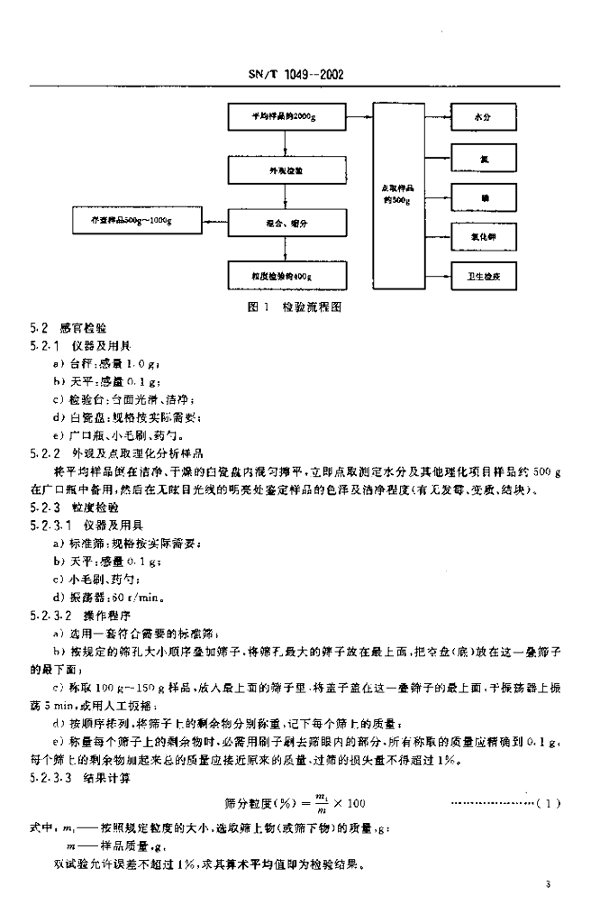 SN/T 1049-2002 出口有机肥、骨粒(粉)检验规程