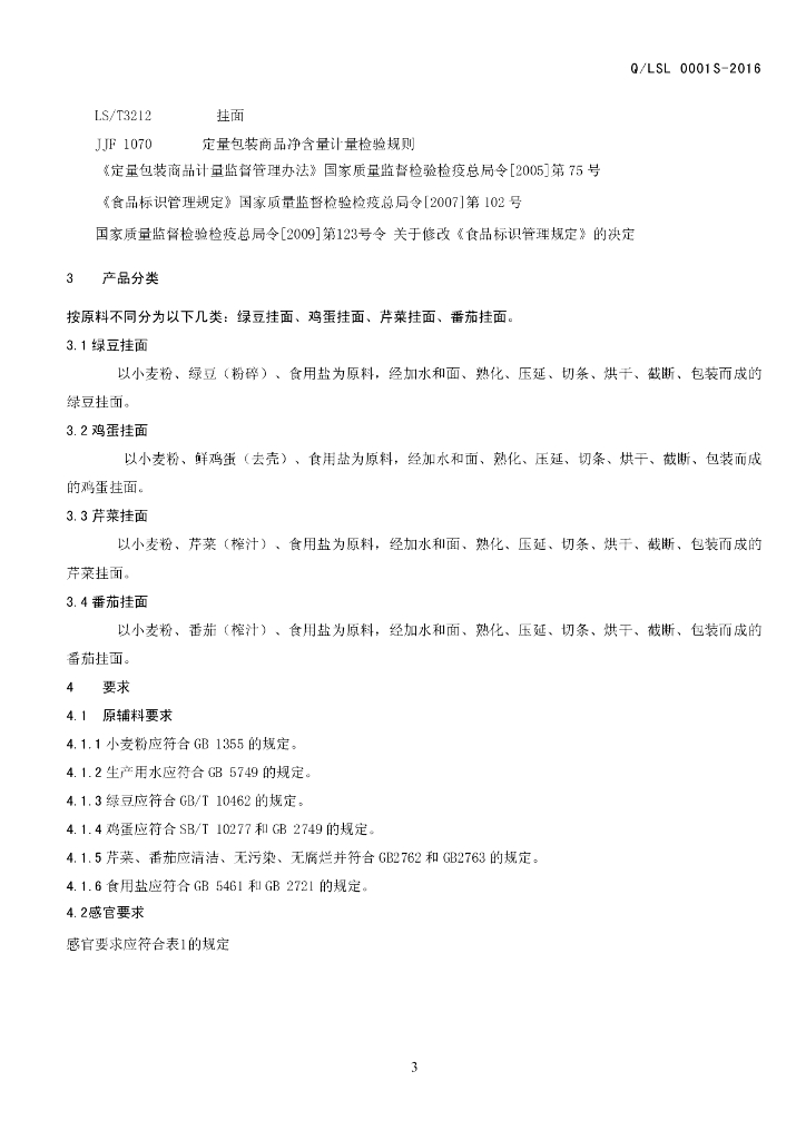 Q/LSL 0001S-2016 洛阳盛隆实业总公司 花色挂面