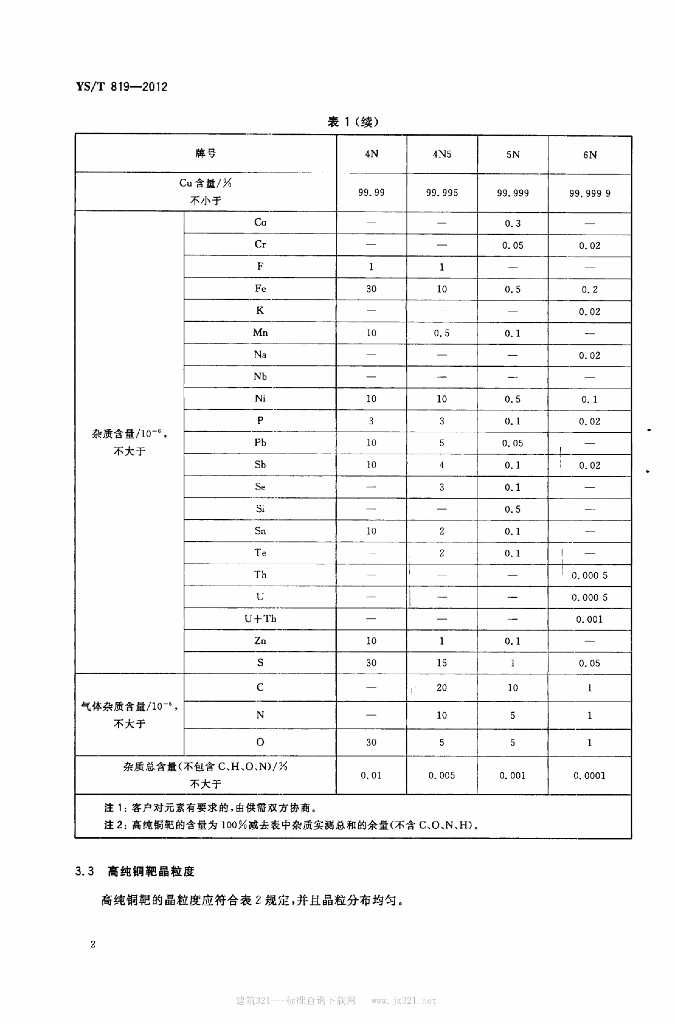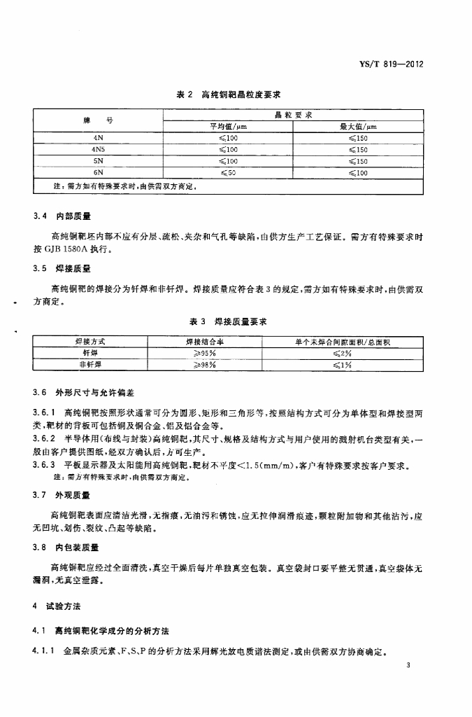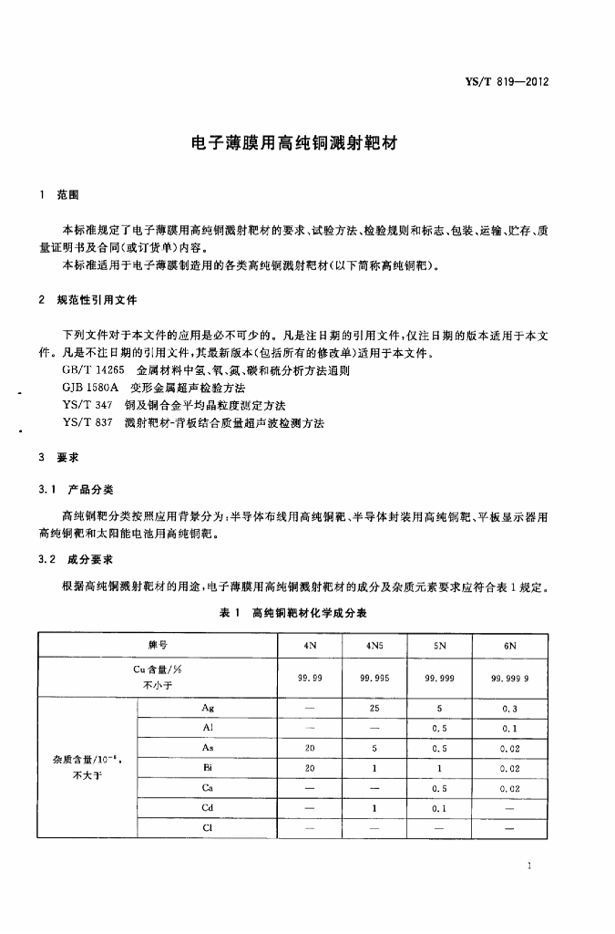 YS/T 819-2012 电子薄膜用高纯铜溅射靶材