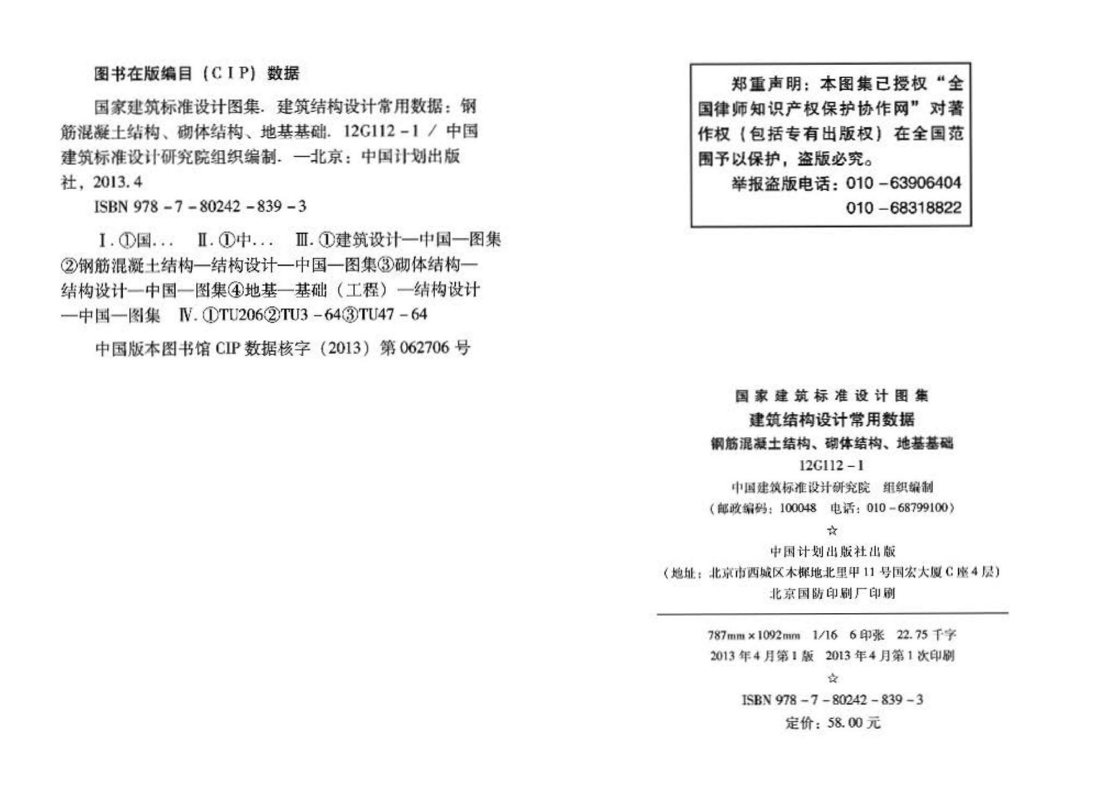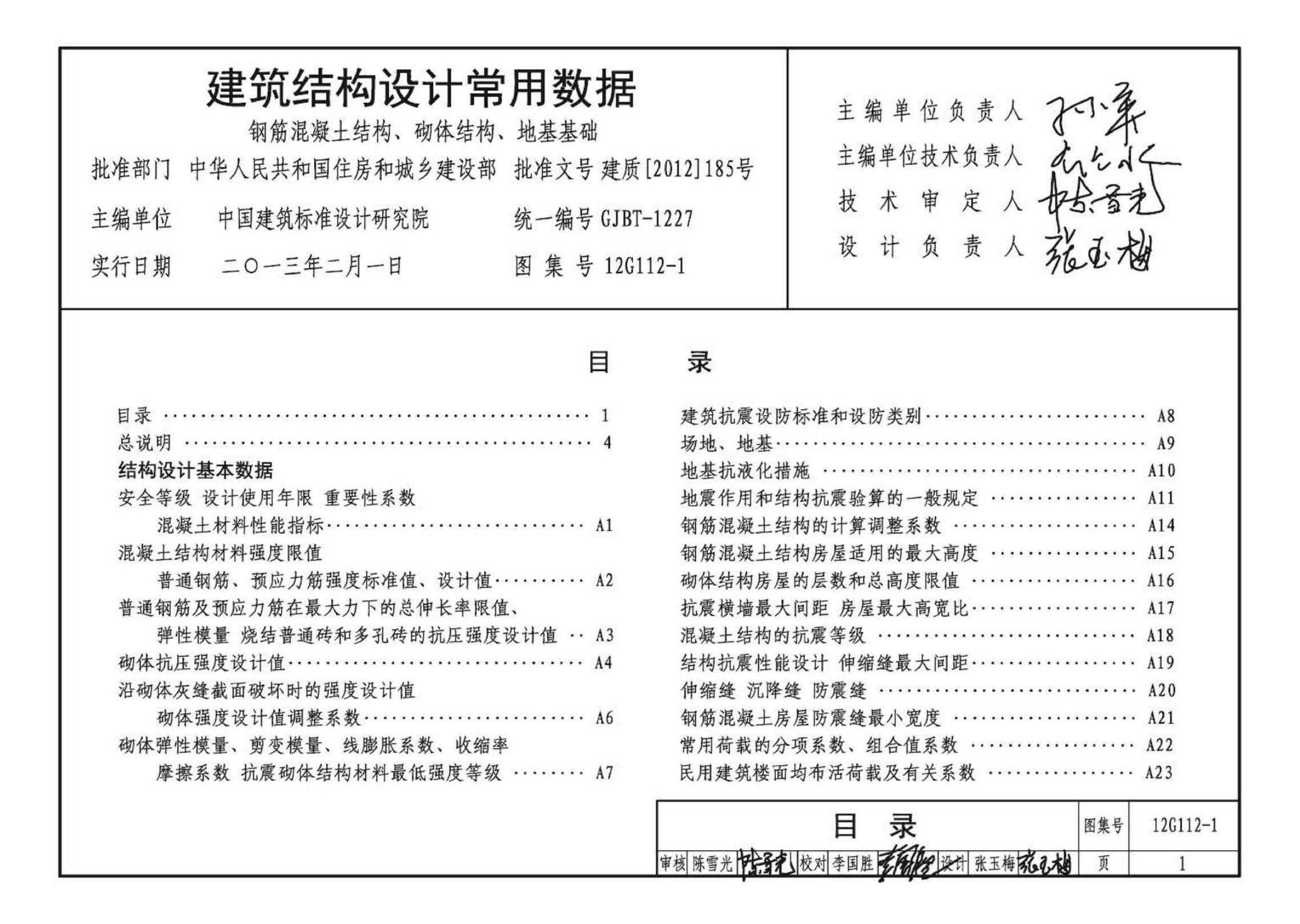 12G112-1 建筑结构设计常用数据(钢筋混凝土结构、砌体结构、地基基础)图集