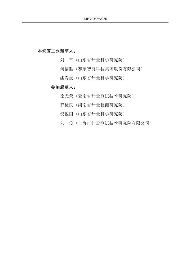 刘平(山东省计量科学研究院);何福胜(赛摩智能科技集团股份有限公司);潘寿虎(山东省计量科学研究院);徐光荣(云南省计量测试技术研究院);罗检民(湖南省计量检测研究院);倪俊国(山东省计量科学研究院);朱俊上海市计量测试技术研究院有限公司)