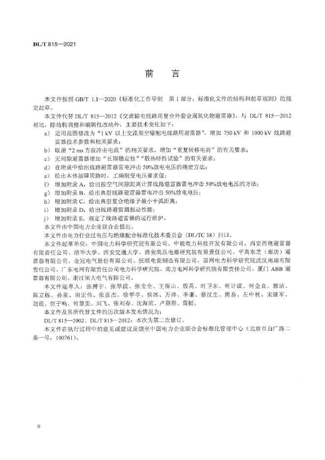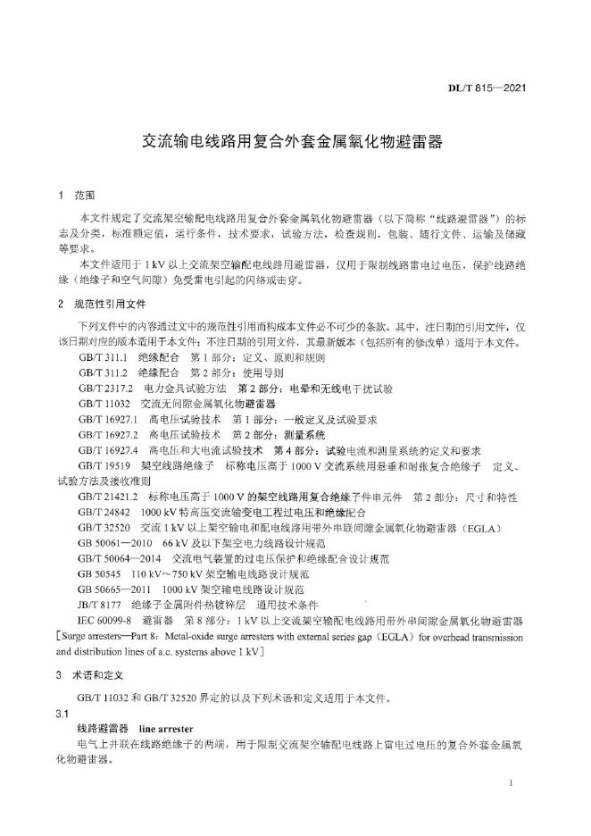DL/T 815-2021 交流输电线路用复合外套金属氧化物避雷器
