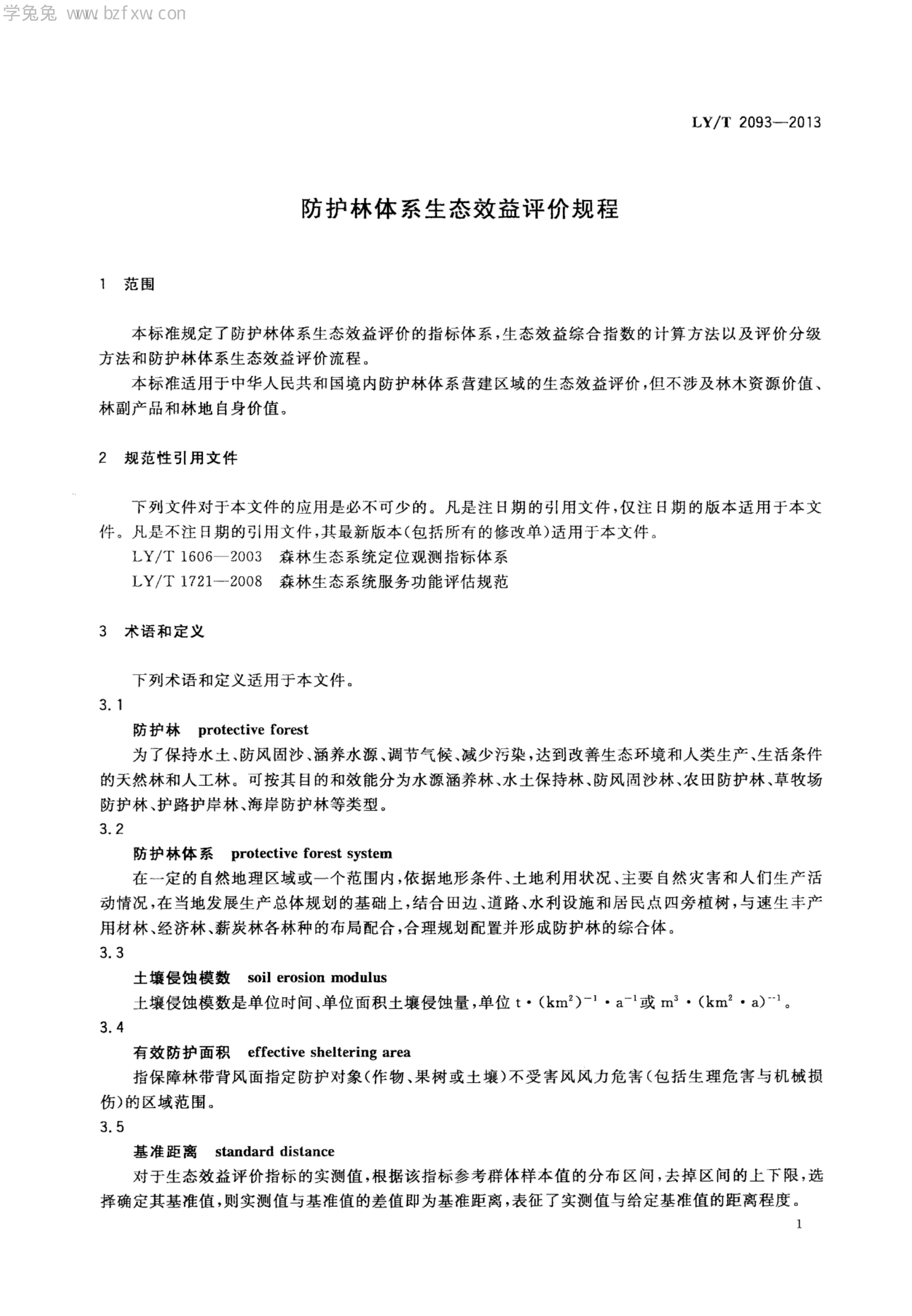 LY/T 2093-2013 防护林体系生态效益评价规程