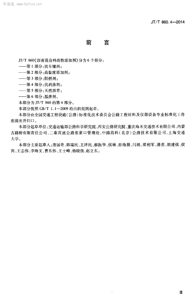 JT/T 860.4-2014 沥青混合料改性添加剂 第4部分:抗剥落剂
