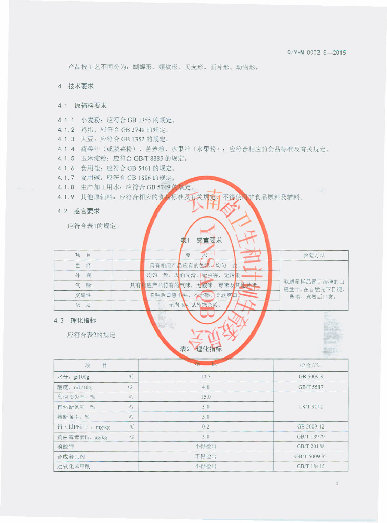 Q/YHM 0002S-2015 云南海茂实业有限公司 异形面