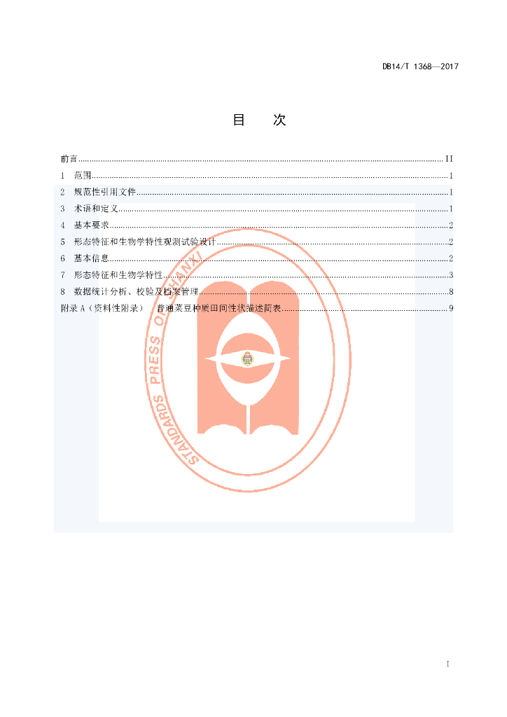 DB14/T 1368-2017 普通菜豆田间性状描述规范