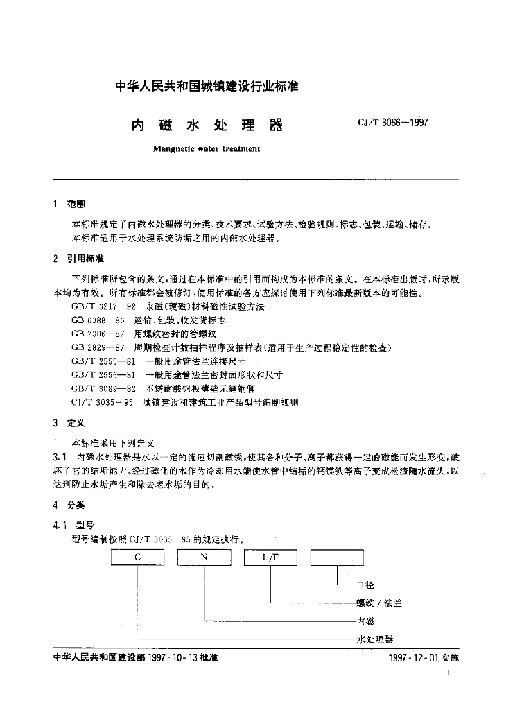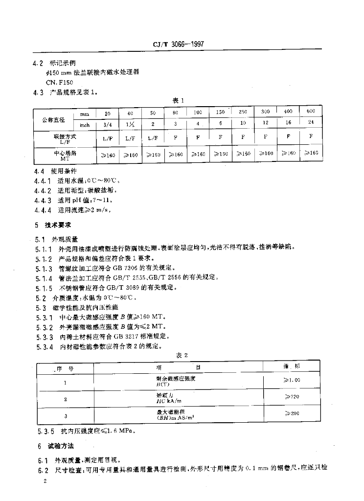 CJ/T 3066-1997 内磁水处理器