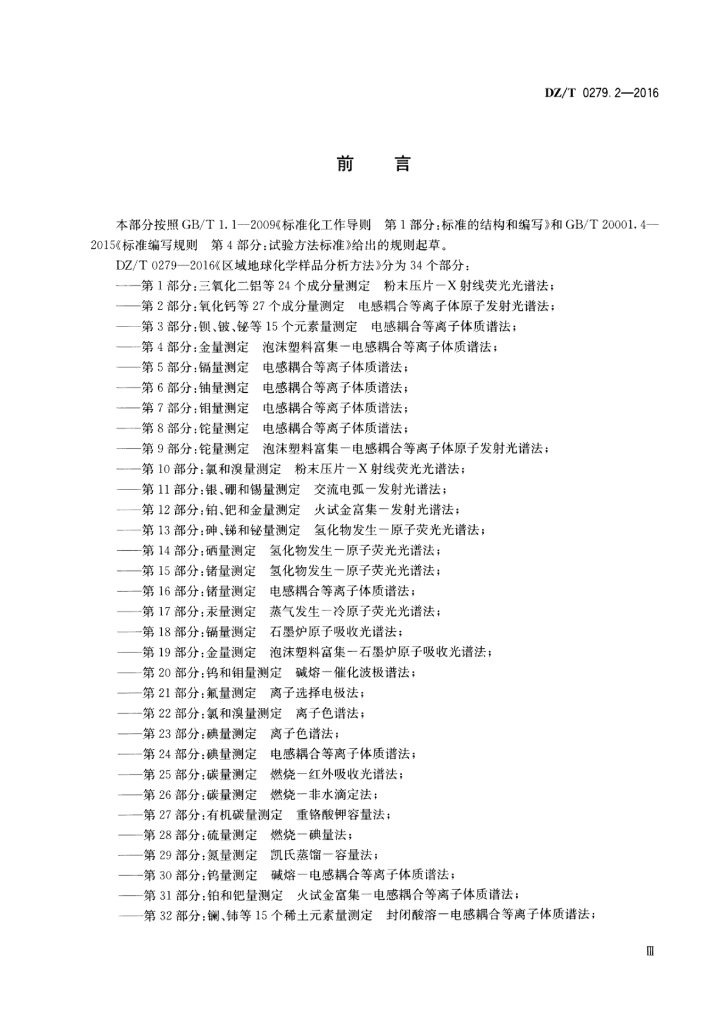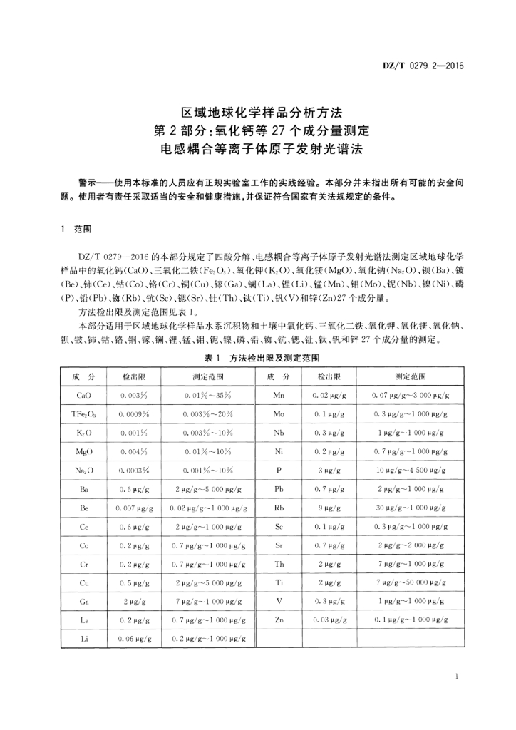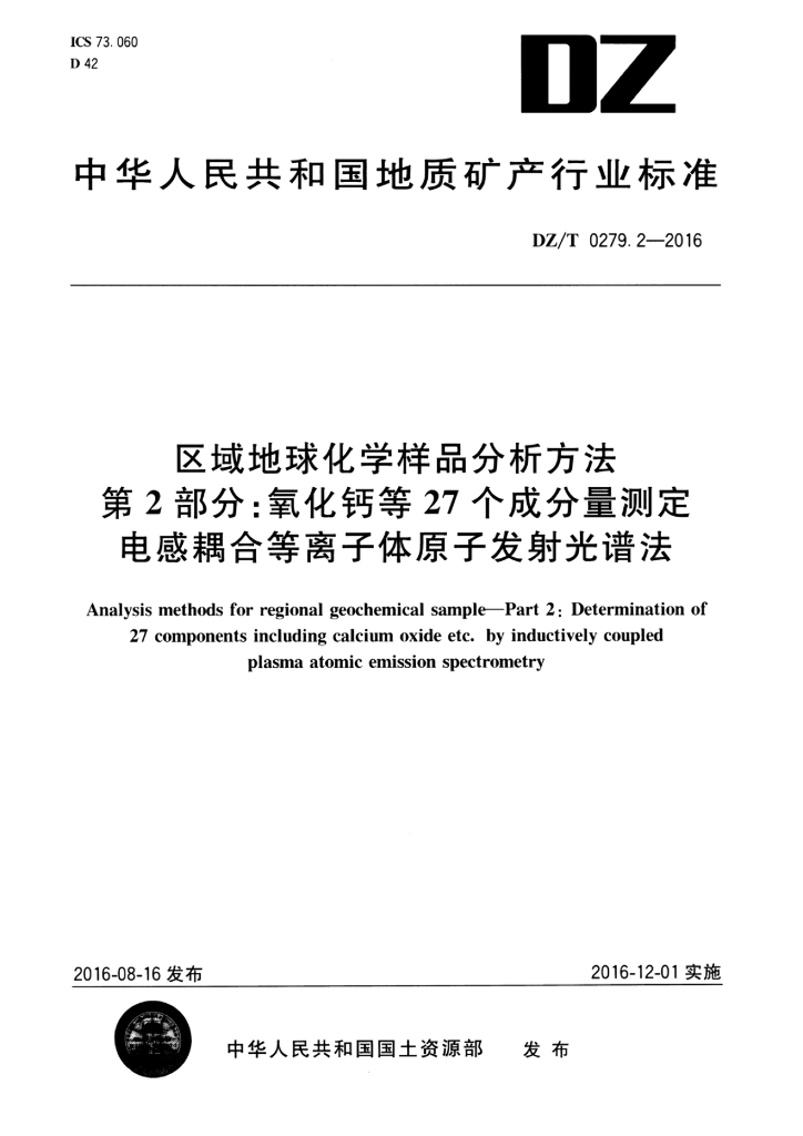 DZ/T 0279.2-2016 区域地球化学样品分析方法 第2部分:氧化钙等27个成分量测定电感耦合等离子体原子发射光谱法