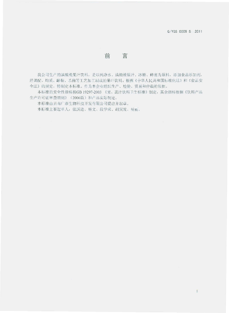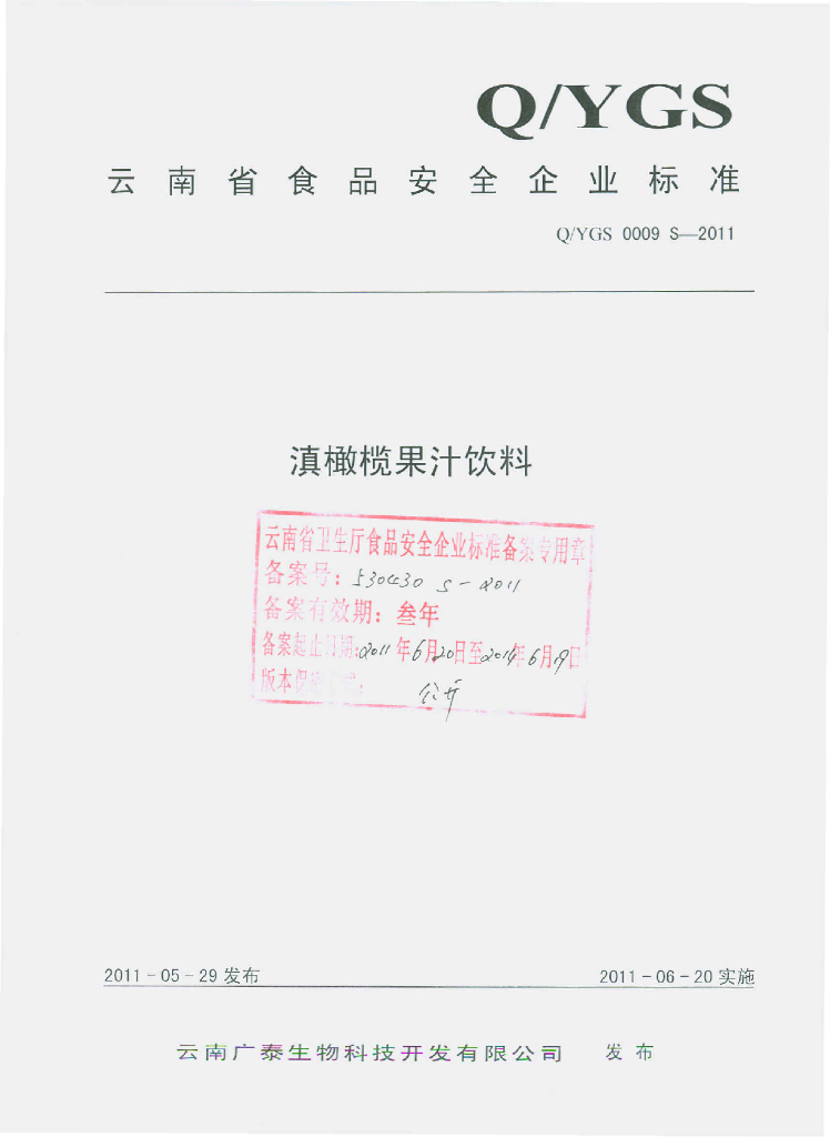 Q/YGS 0009S-2011 滇橄榄果汁饮料