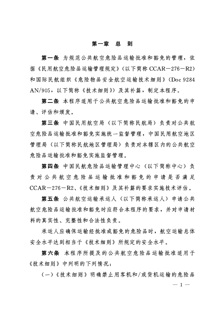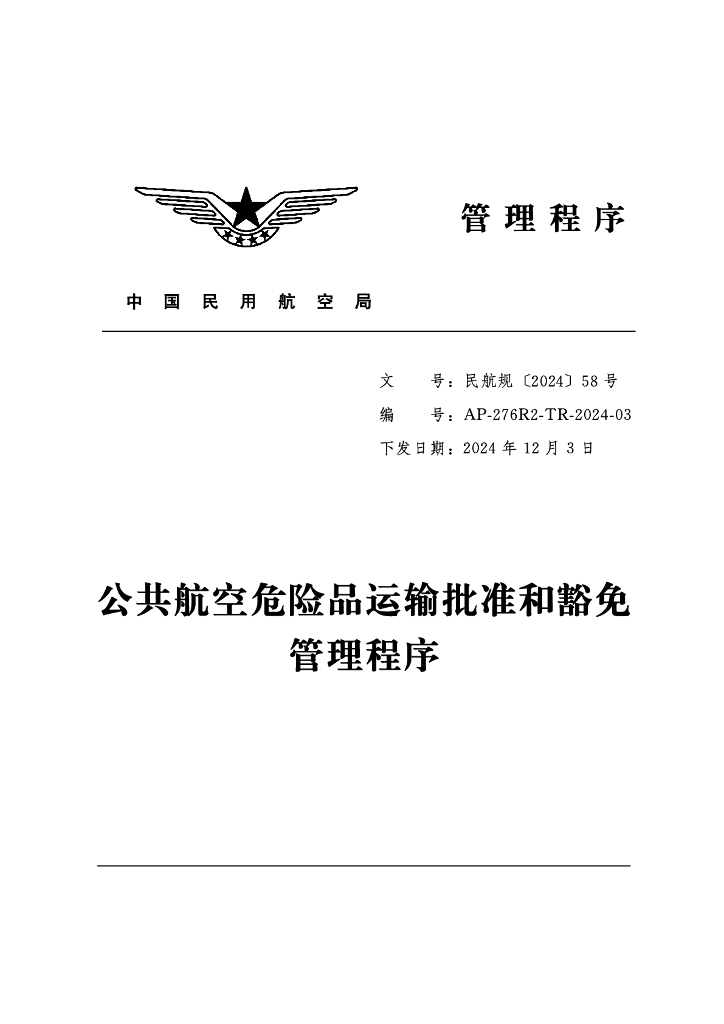 AP-276R2-TR-2024-03 公共航空危险品运输批准和豁免管理程序