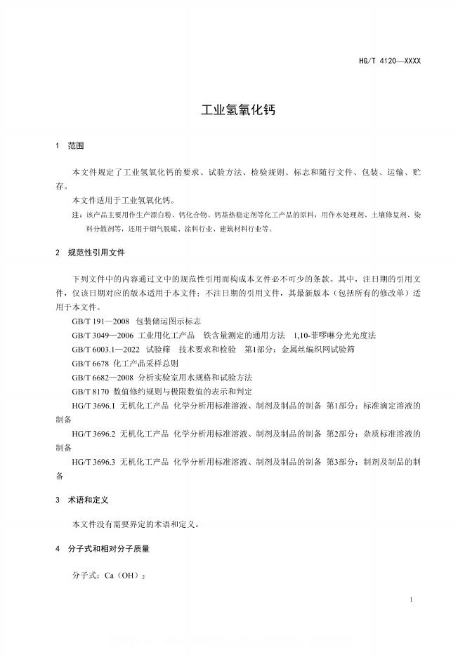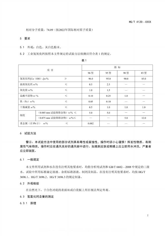 HG/T 4120-2024 工业氢氧化钙