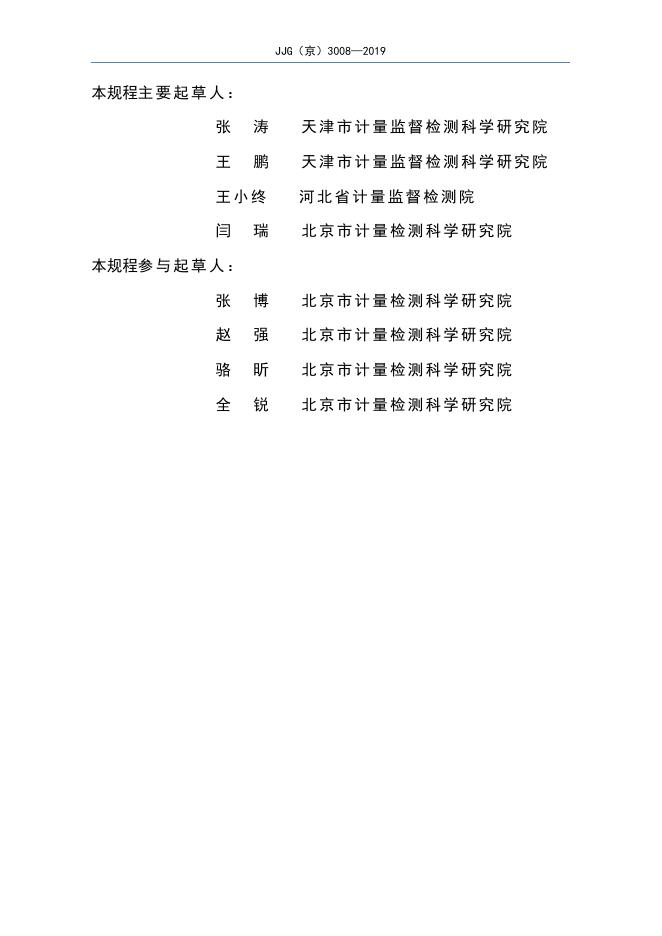 张涛(天津市计量监督检测科学研究院)、王鹏(天津市计量监督检测科学研究院)、王小终(河北省计量监督检测院)、闫瑞(北京市计量检测科学研究院)、张博(北京市计量检测科学研究院)、赵强(北京市计量检测科学研究院)、骆昕(北京市计量检测科学研究院)、全锐(北京市计量检测科学研究院)