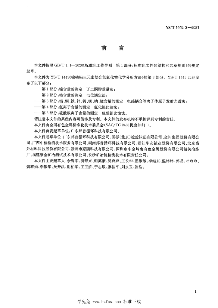 广东邦普循环科技有限公司、广东邦普循环科技有限公司、国标(北京)检验认证有限公司、金川集团股份有限公司、广西中检检测技术服务有限公司、湖南邦普循环科技有限公司、浙江华友钴业股份有限公司、北京当升材料科技股份有限公司、赣州市豪鹏科技有限公司、深圳市中金岭南有色金属股份有限公司韶关治炼厂、福建紫金矿治测试技术有限公司、长沙矿冶院检测技术有限责任公司