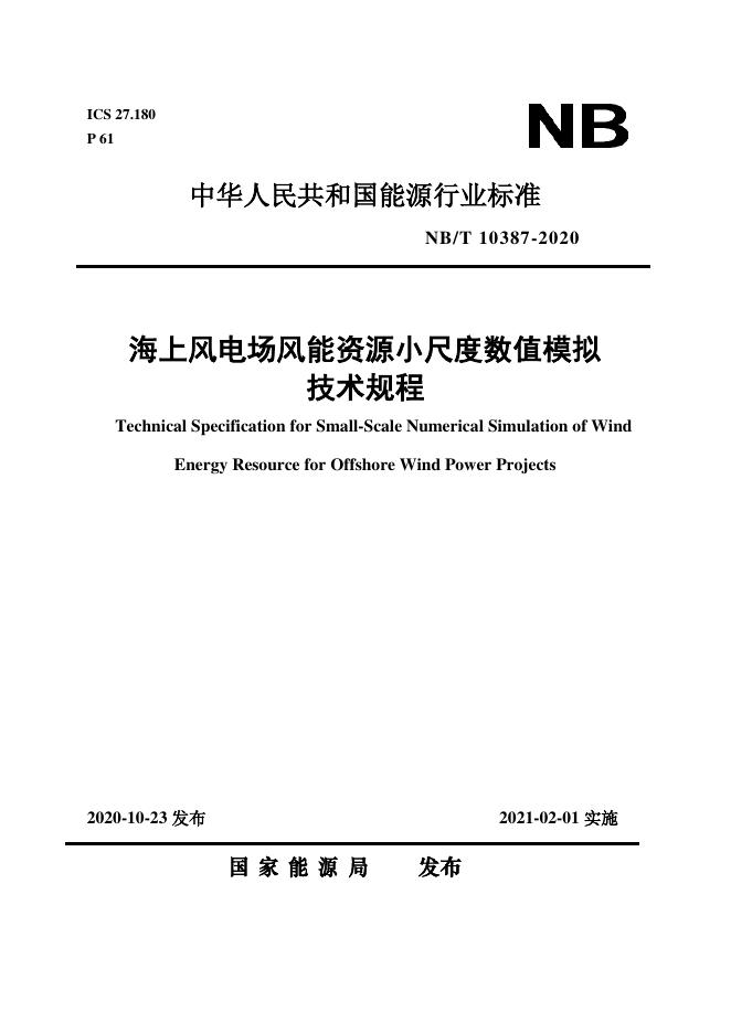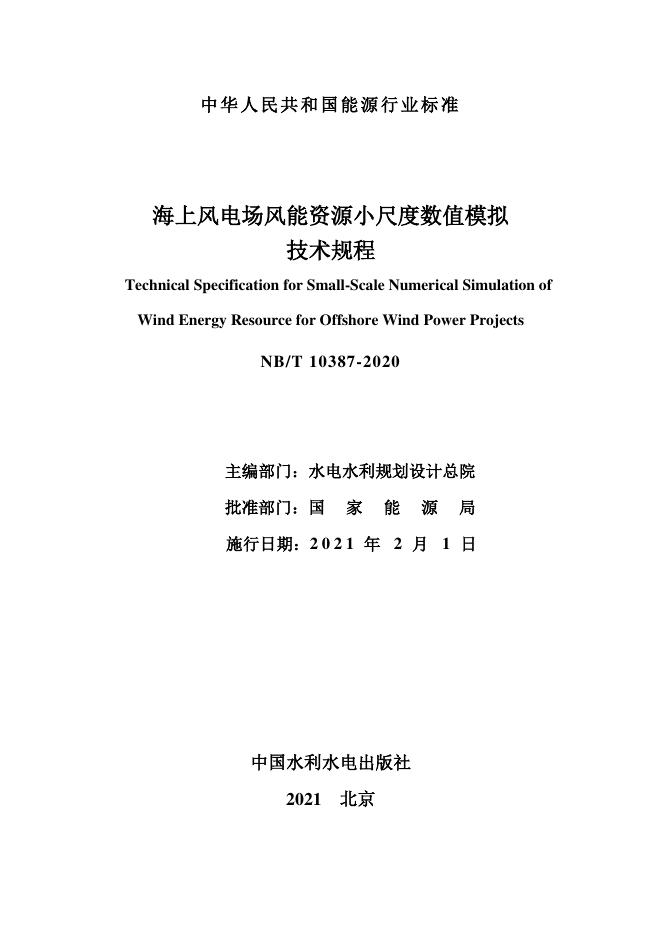 NB/T 10387-2020 海上风电场风能资源小尺度数值模拟技术规程