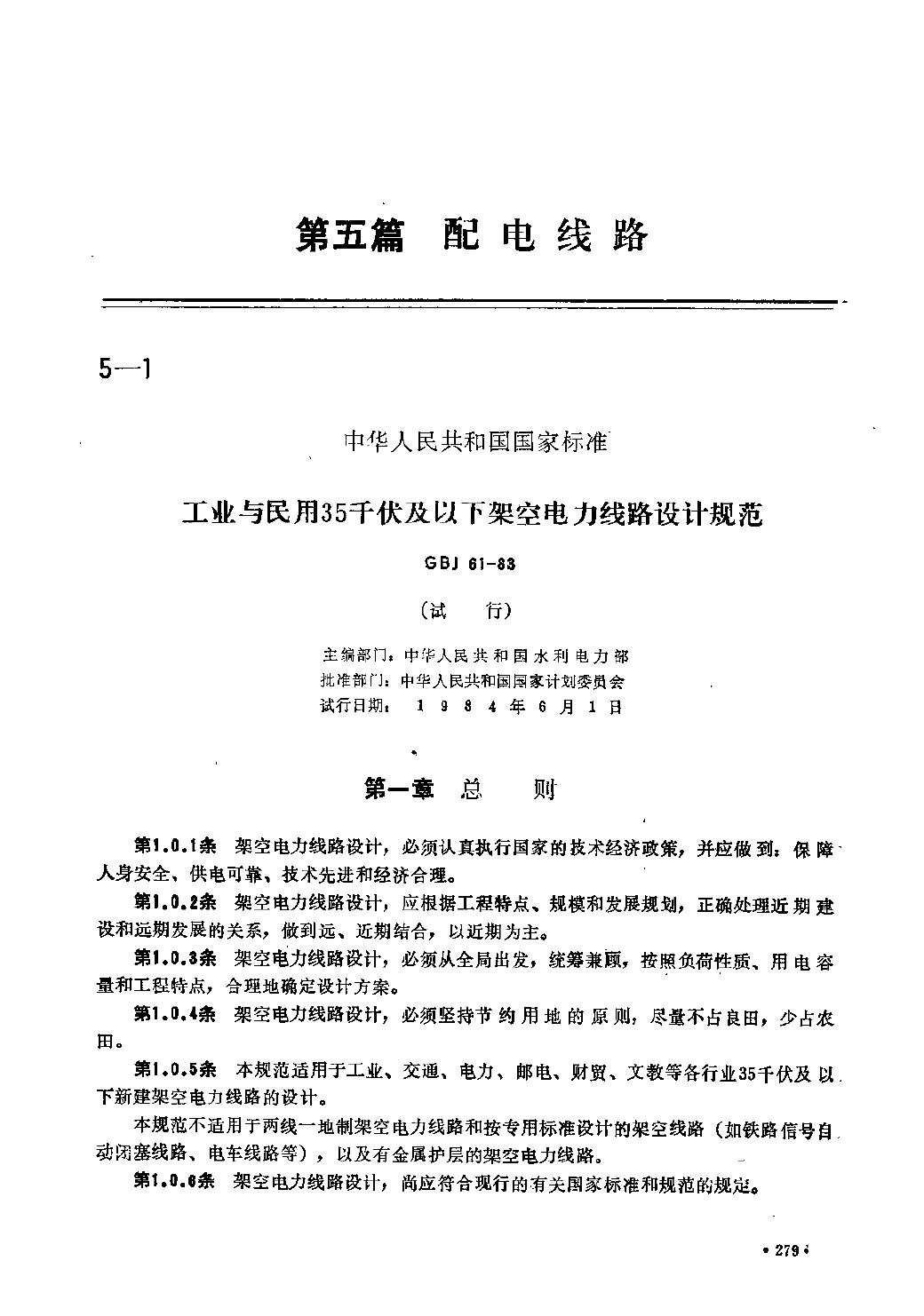 GBJ 61-1983 工业与民用35千伏及以下架空电力线路设计规范