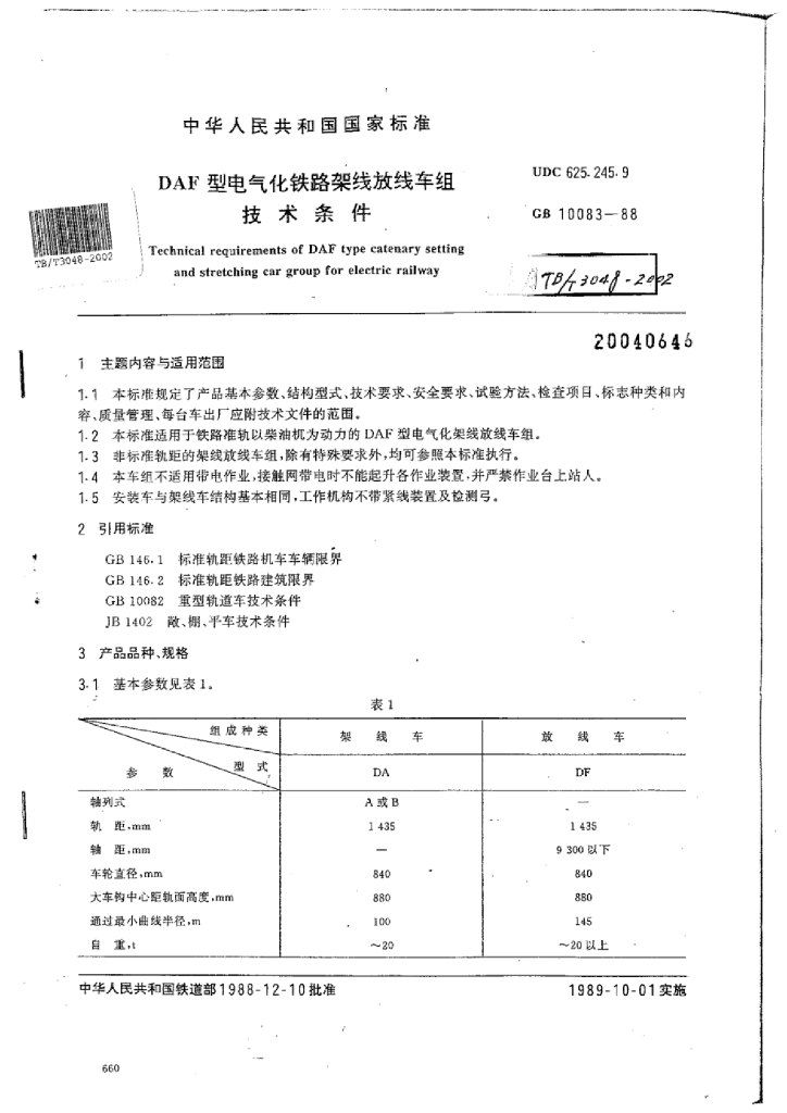 TB/T 3048-2020 DAF型电气化铁路架线放线车组技术条件