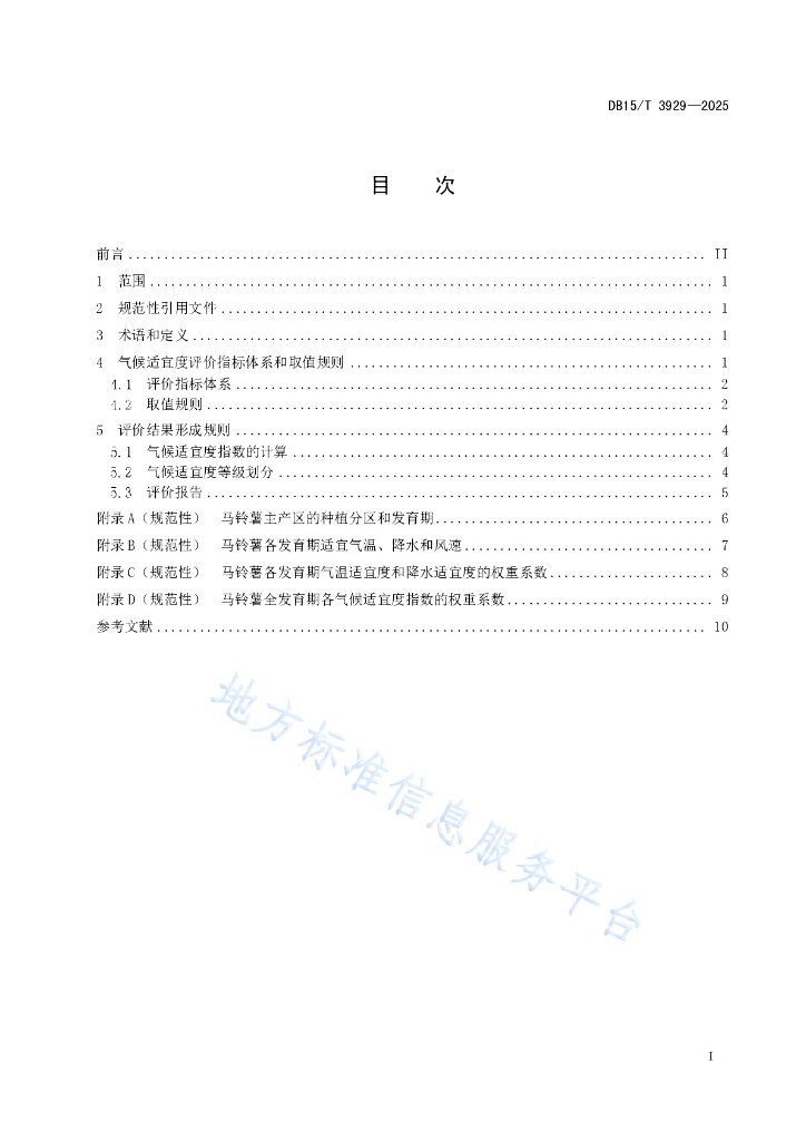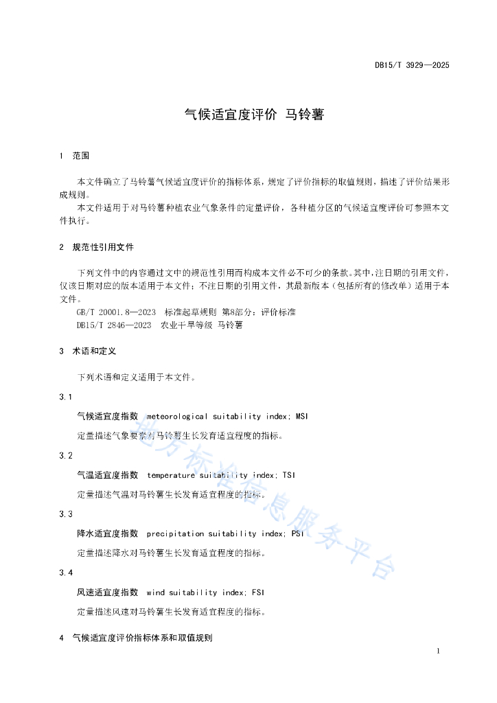 DB15/T 3929-2025 气候适宜度评价 马铃薯