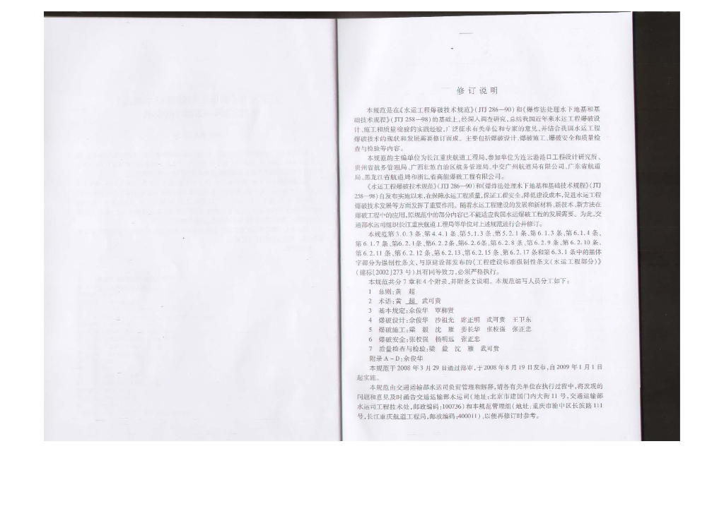 长江重庆航道工程局、连云港港口工程设计研究所、贵州省航务管理局、广西壮族自治区航务管理局、中交广州航道局有限公司、广东省航道局、黑龙江省航道局、浙江省高能爆破工程有限公司