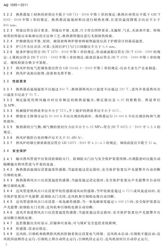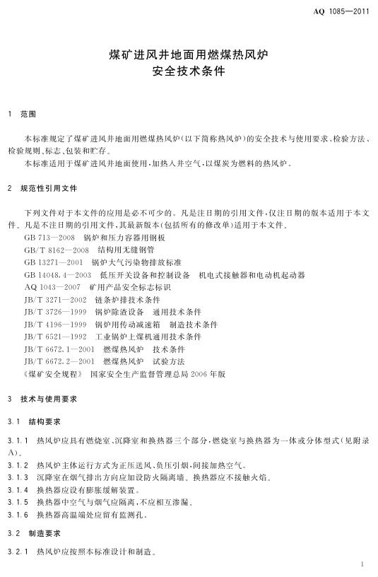 AQ/T 1085-2011 煤矿进风井地面用燃煤热风炉安全技术条件