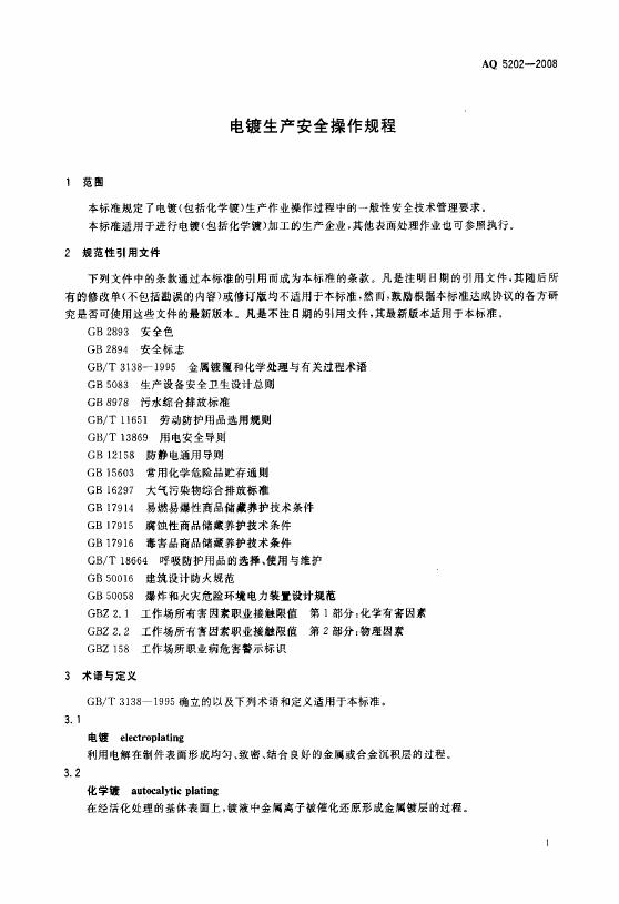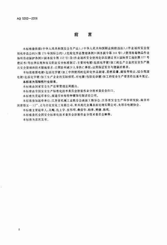AQ 5202-2008 电镀生产安全操作规程