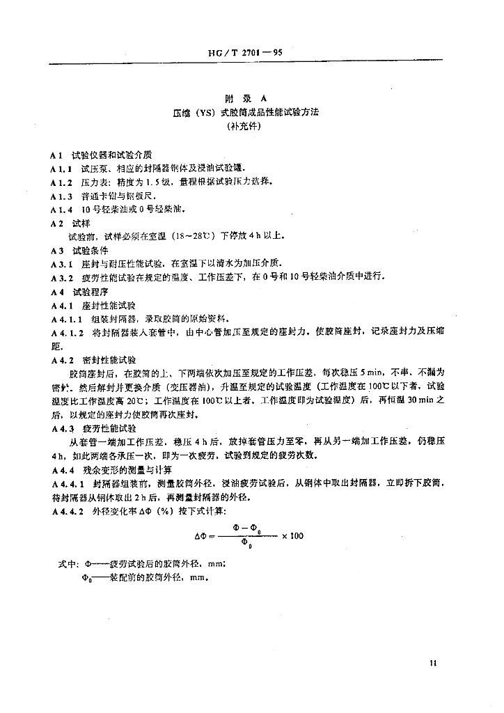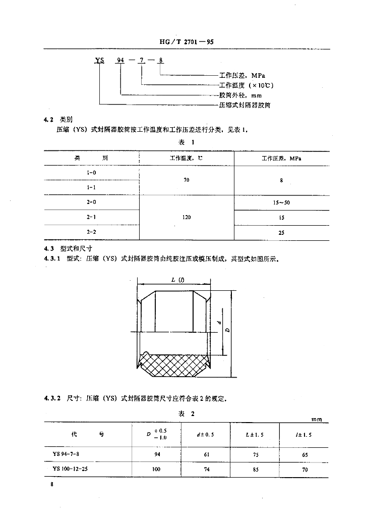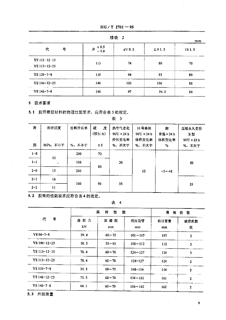 HG/T 2701-1995 油气田用压缩(YS)式封隔器胶筒