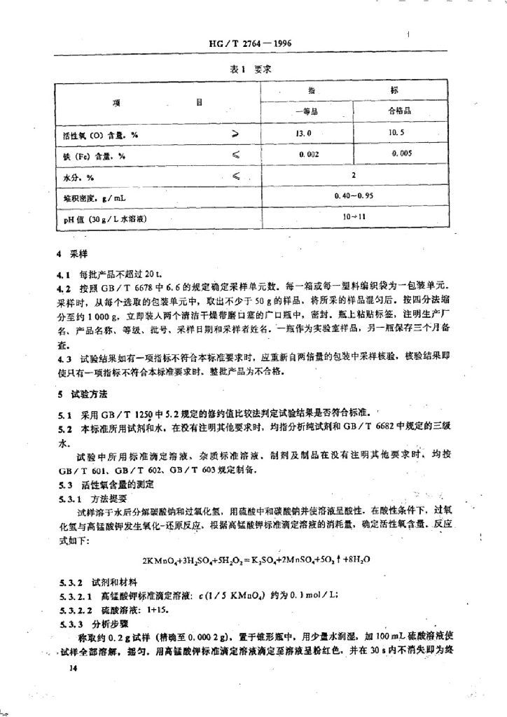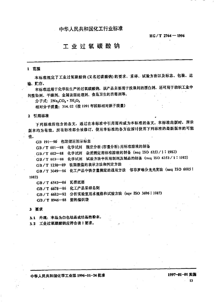 HG/T 2764-1996 工业过氧碳酸钠