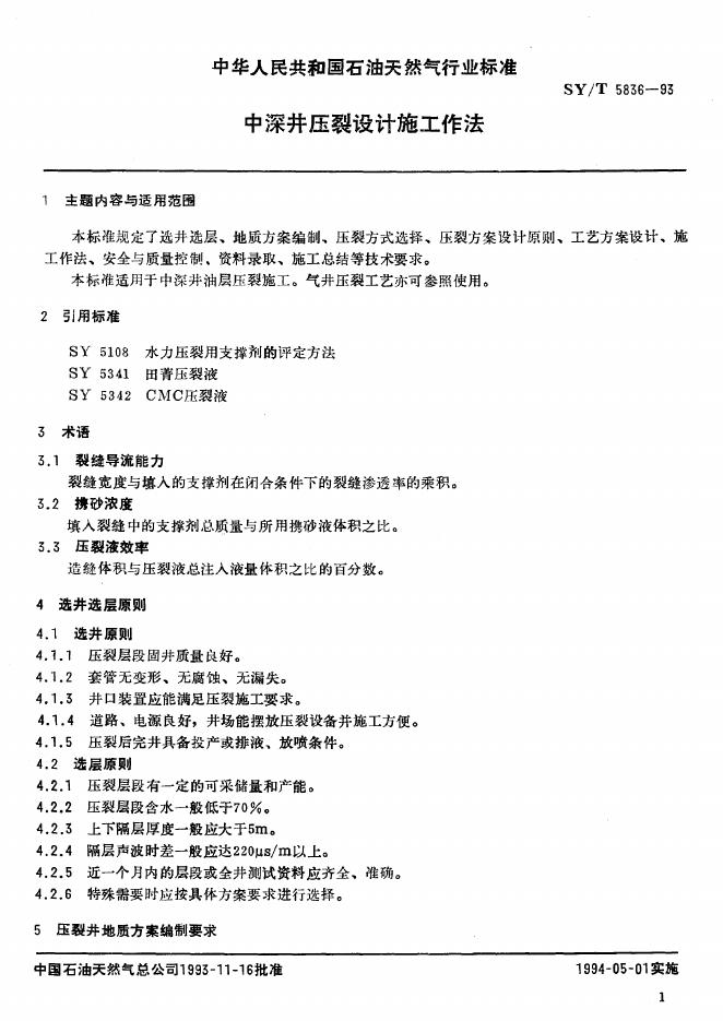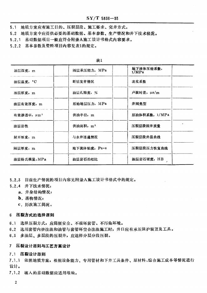 SY/T 5836-1993 中深井压裂设计施工作法