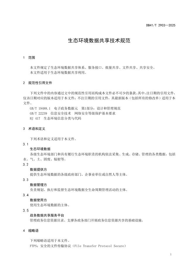 DB41/T 2903-2025 生态环境数据共享技术规范