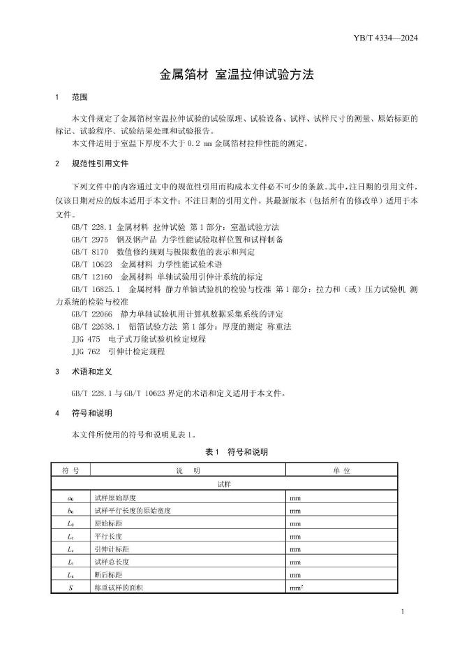 YB/T 4334-2024 金属箔材 室温拉伸试验方法