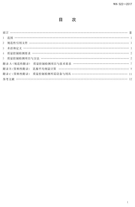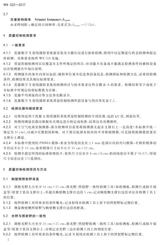 WS 522-2017 乳腺数字X射线摄影系统质量控制检测规范