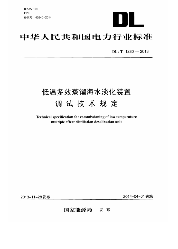 DL/T 1280-2013 低温多效蒸馏海水淡化装置调试技术规定