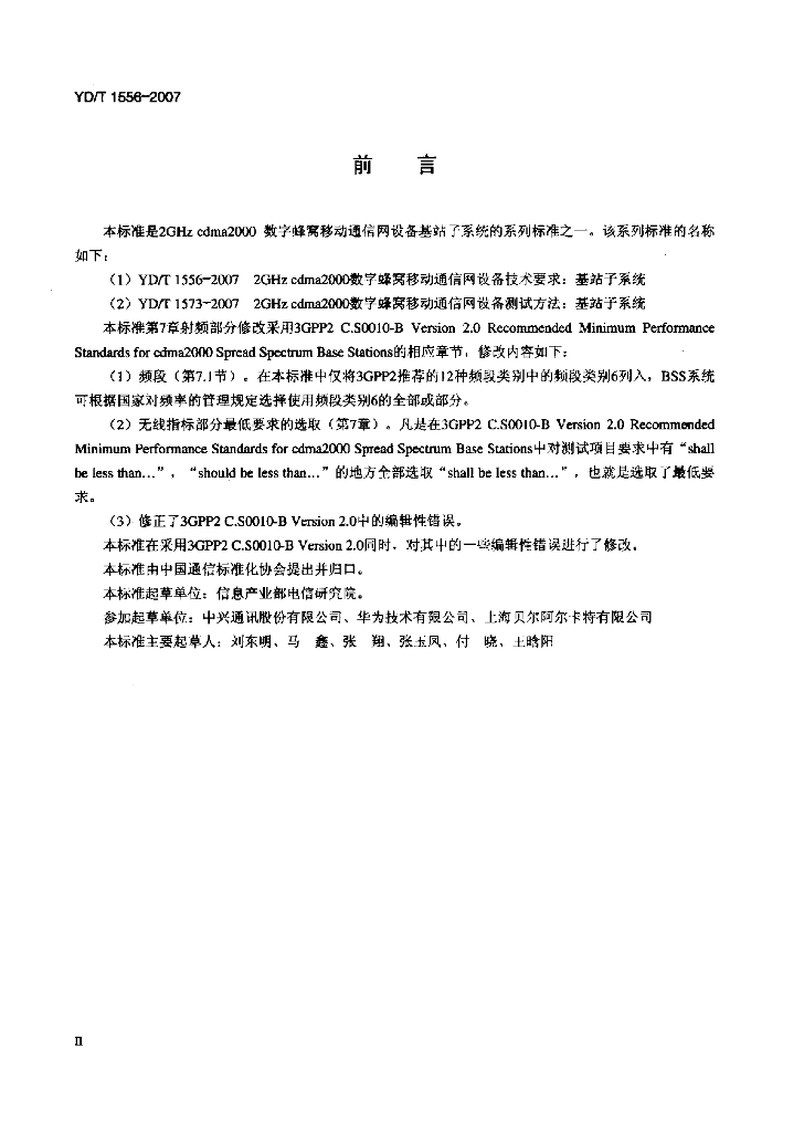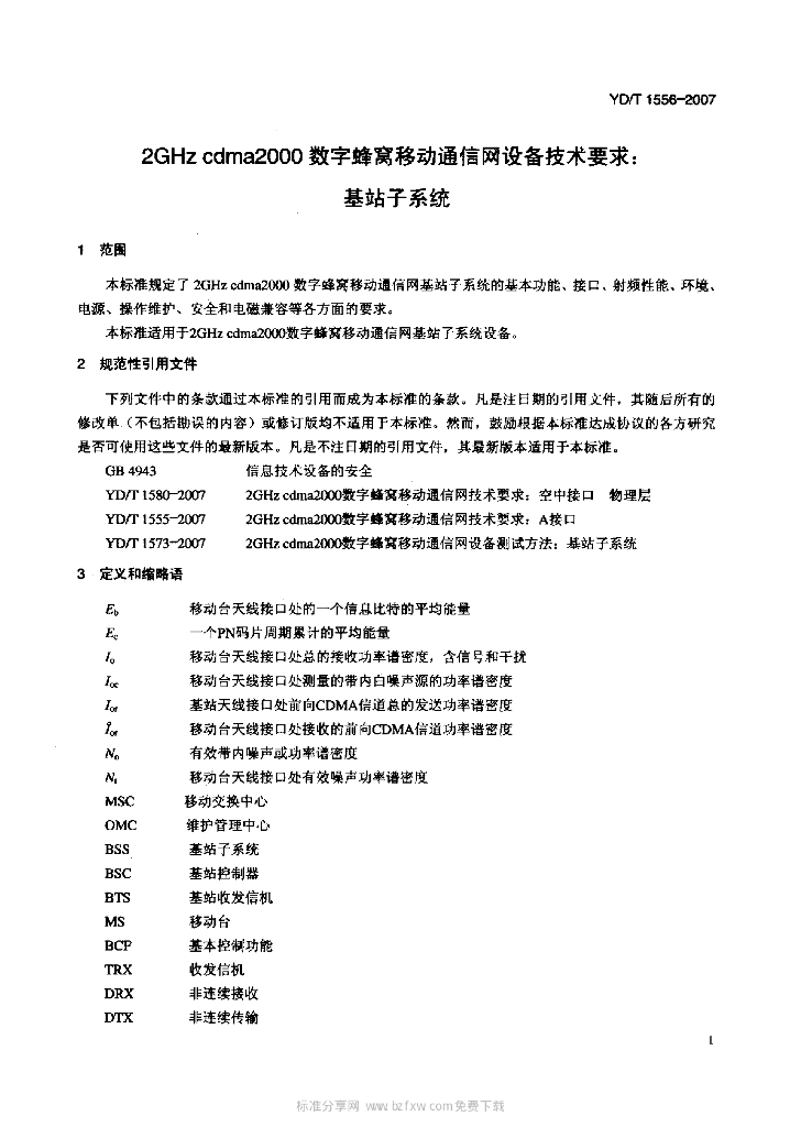 YD/T 1556-2007 2GHz cdma2000 数字蜂窝移动通信网设备技术要求:基站子系统