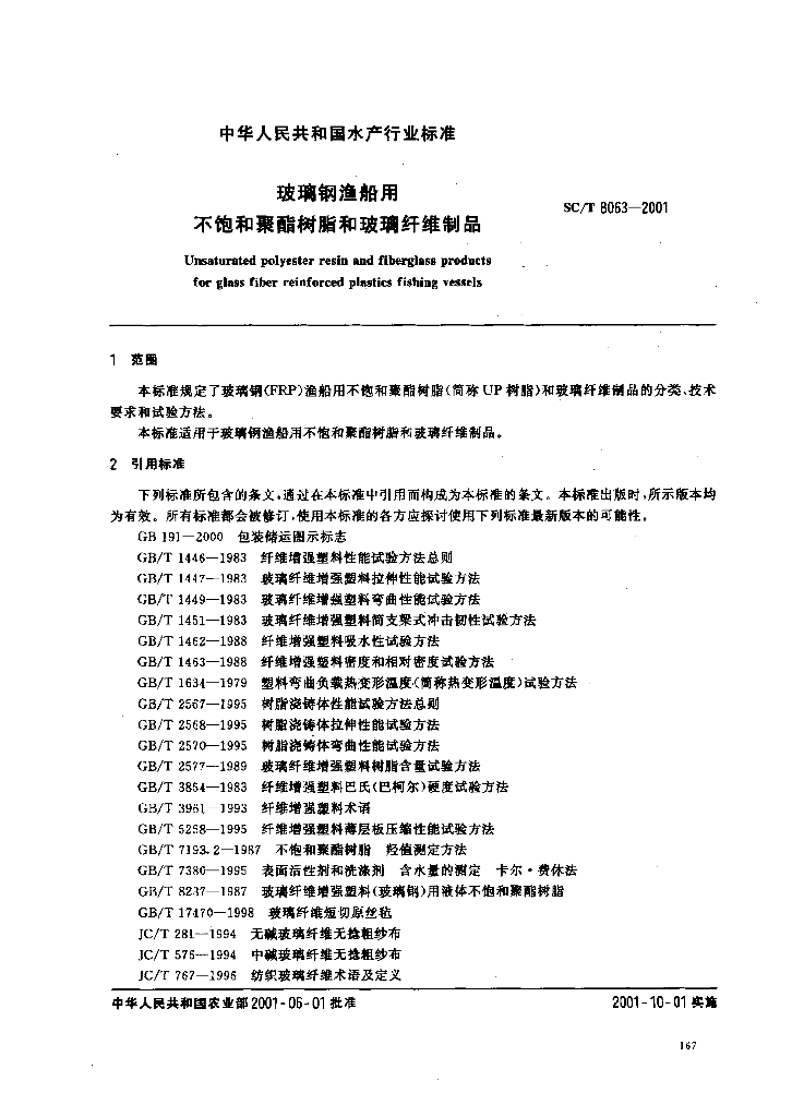 SC/T 8063-2001 玻璃钢渔船用不饱和聚酯树脂和玻璃纤维制品