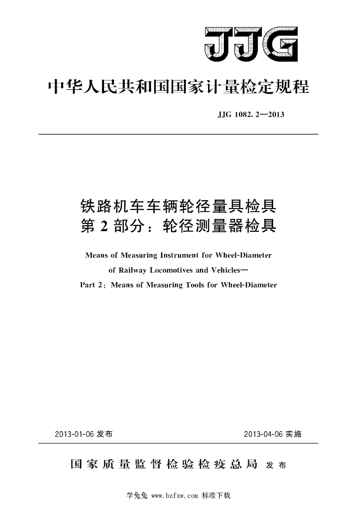 JJG 1082.2-2013 铁路机车车辆轮径量具检具 第2部分:轮径测量器检具