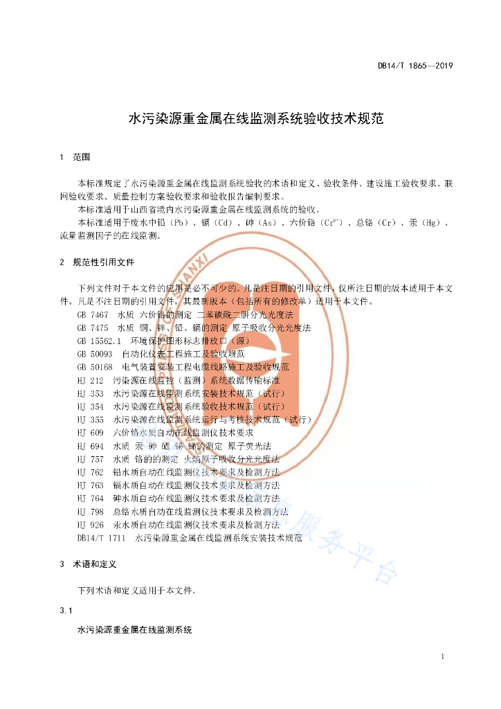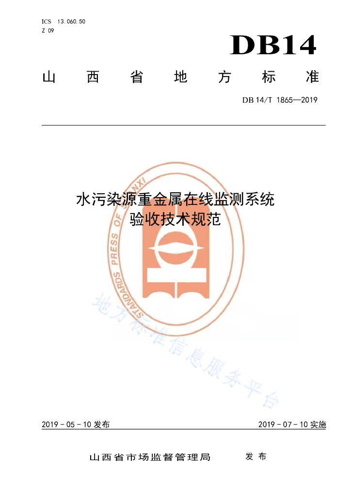 DB14/T 1865-2019 水污染源重金属在线监测系统验收技术规范