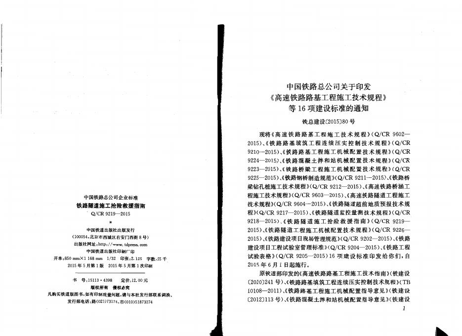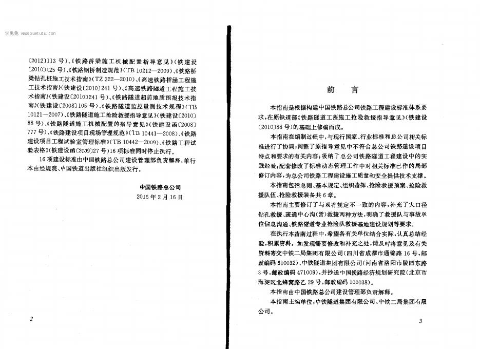 Q/CR 9219-2015 铁路隧道施工抢险救援指南